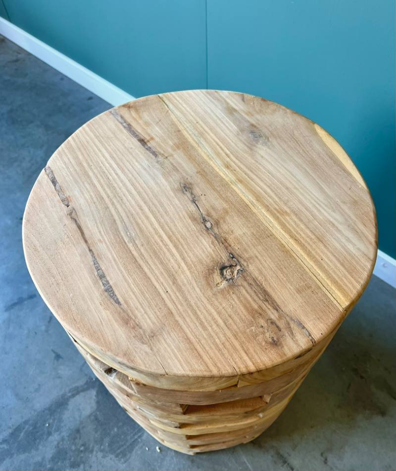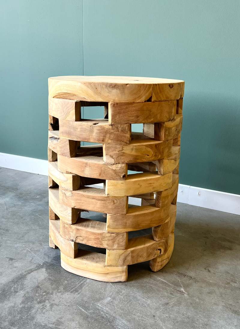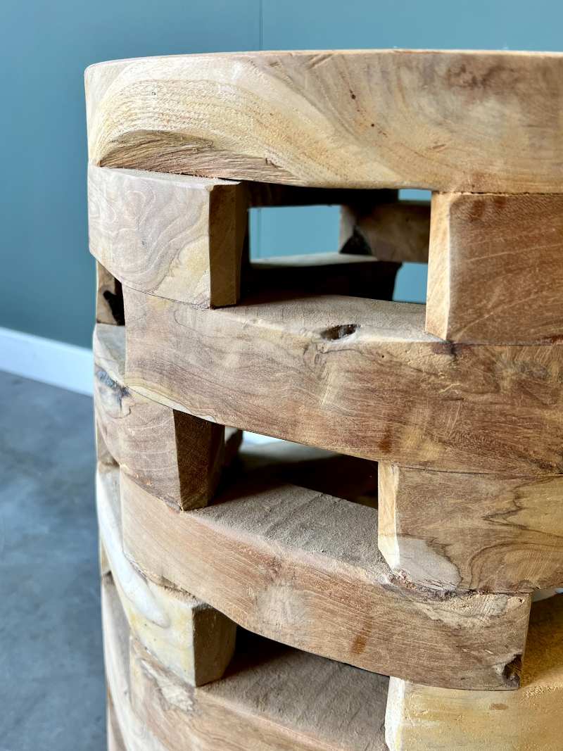 Unieke bijzettafel gemaakt van teakhout.
