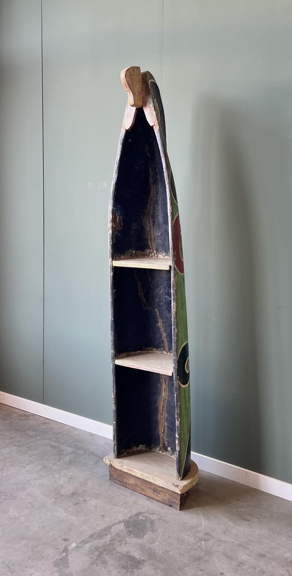 Breng karakter in je interieur met deze unieke kast, handgemaakt van een originele, oude kano uit Indonesië. Elk stuk is uniek! Laat jouw interieur spreken met een meubel dat je nergens anders vindt.