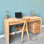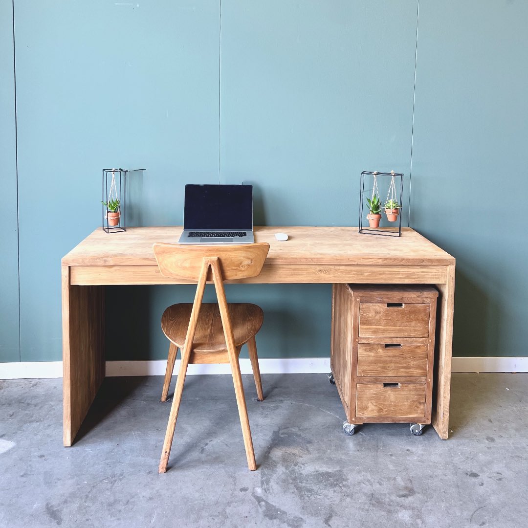 Upgrade je werkruimte met dit moderne bureau van gerecycled teakhout, FSC-gecertificeerd voor duurzame kwaliteit. Het strakke design past perfect in elk interieur, terwijl het bureau genoeg ruimte biedt voor al je werkbenodigdheden.