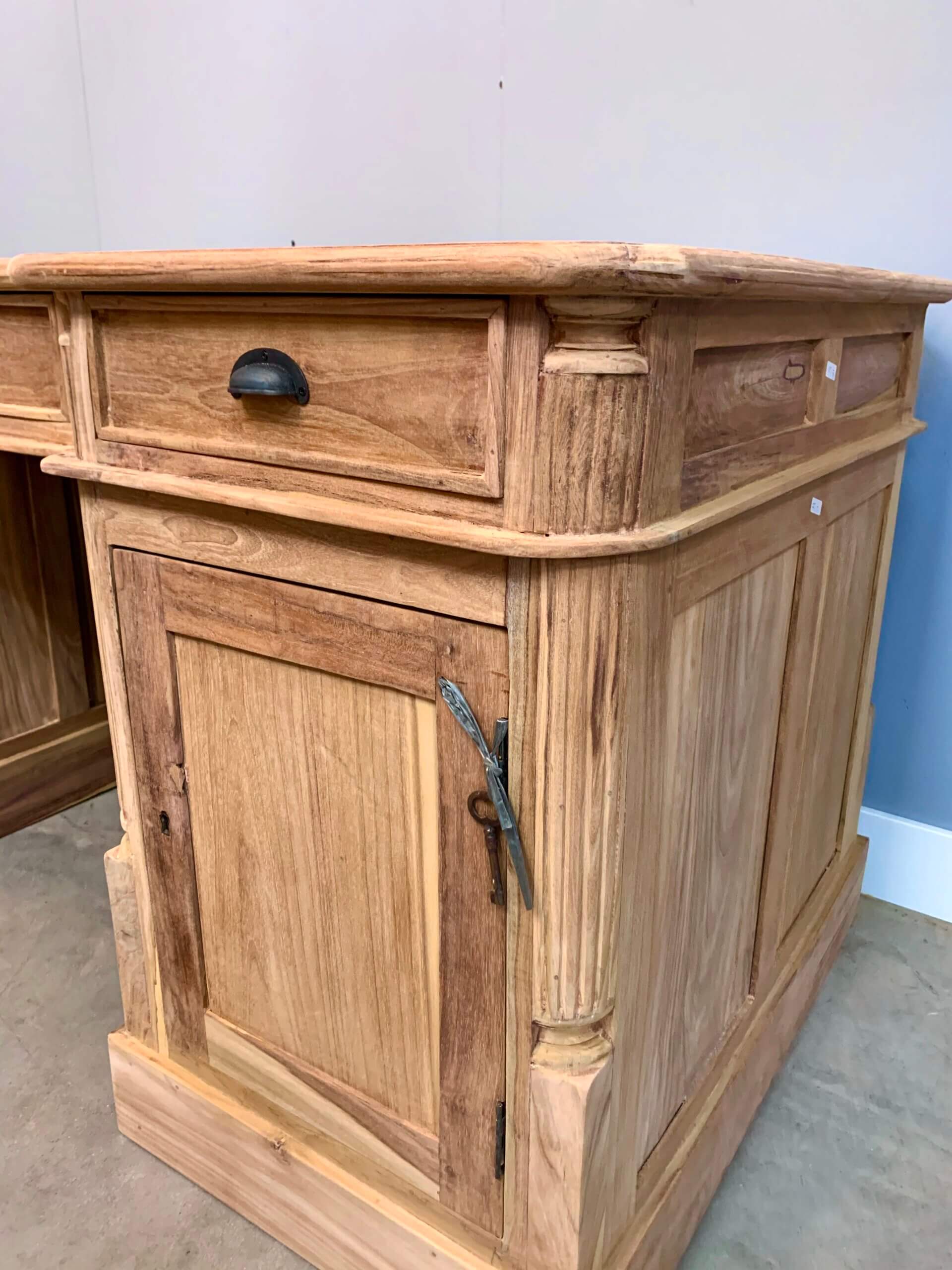 Stijlvol partner bureau van plantage teakhout. Een partner bureau kunt u gebruiken aan beide zijdes. Met een notarislampje maakt u de look helemaal compleet!