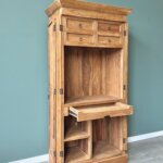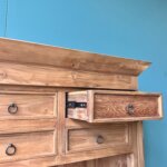 Onmisbaar voor de thuiswerkers, met deze prachtige computerkast bent u verzekerd van een fijne werkplek in uw huis. De laden en het uitschuif plateau gaan soepel open en dicht op een metalen geleider. De kast is volledig gemaakt van gerecycled teakhout.