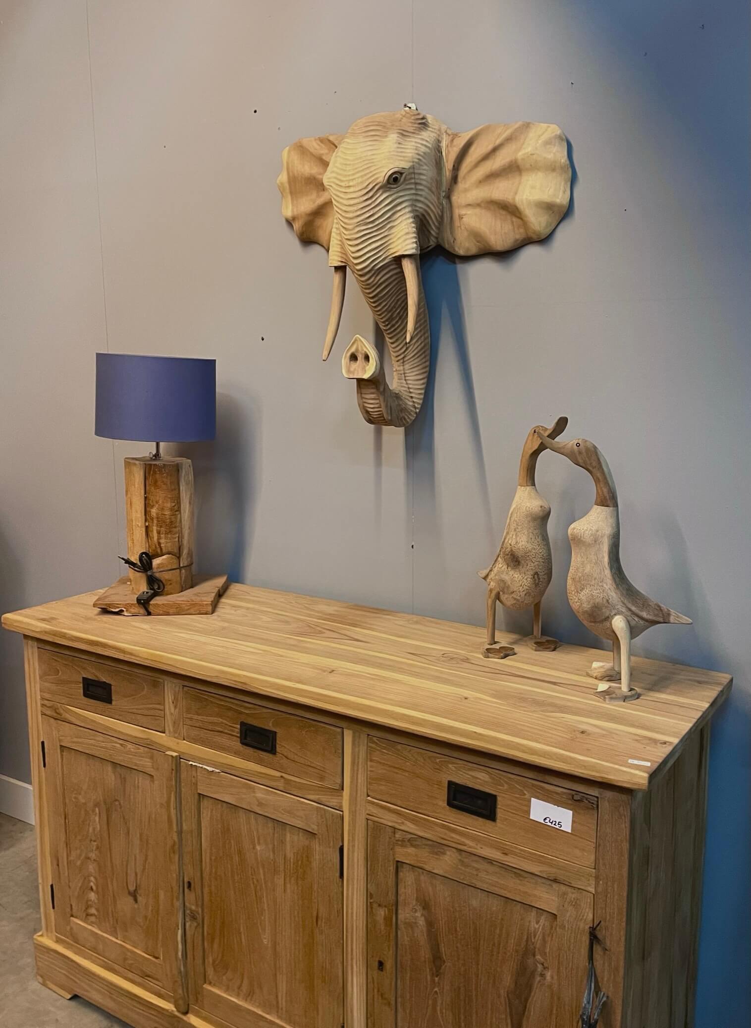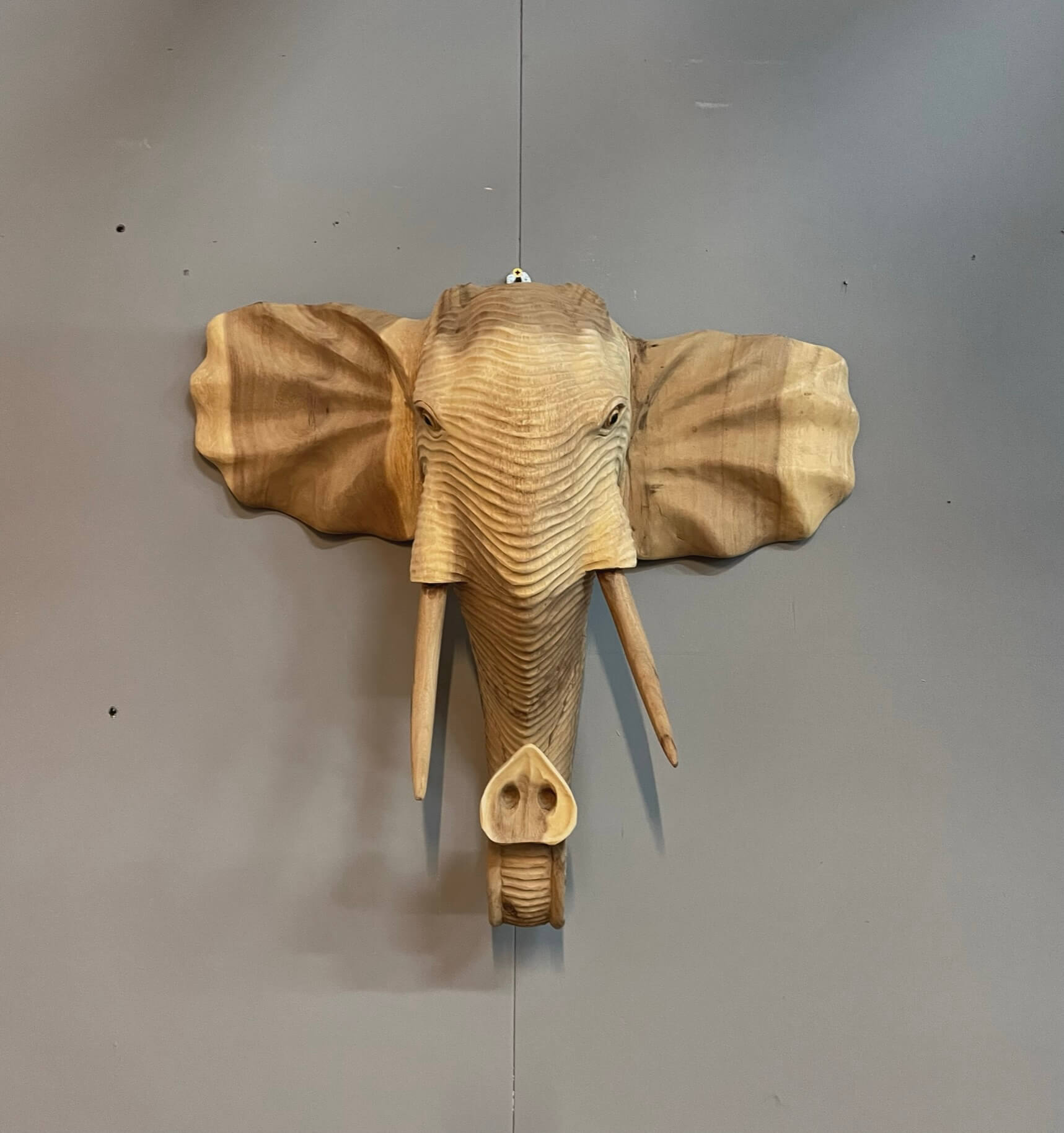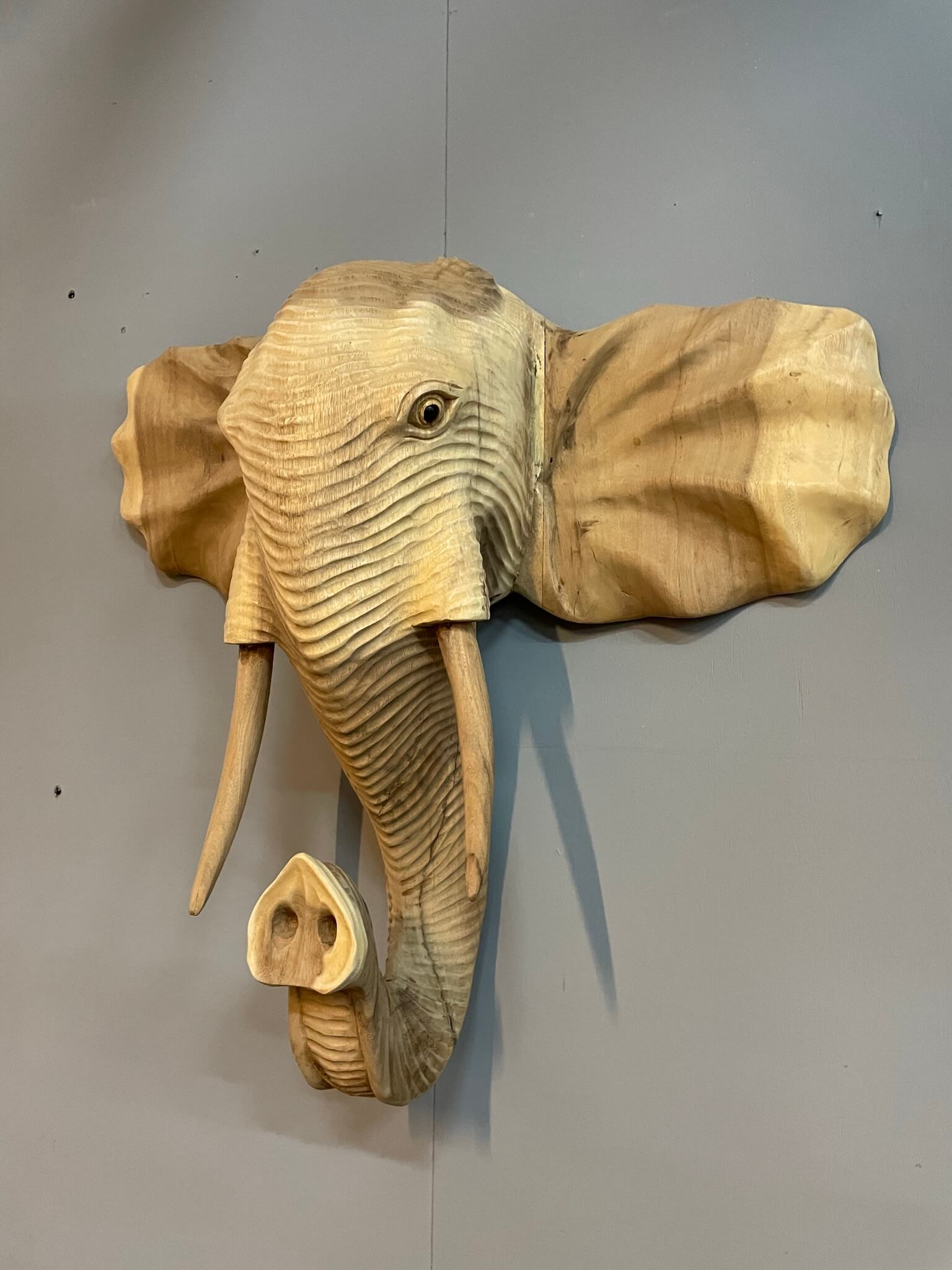 Prachtige decoratieve olifant voor aan de muur. Mooi vakwerk door onze timmerman in Indonesië.