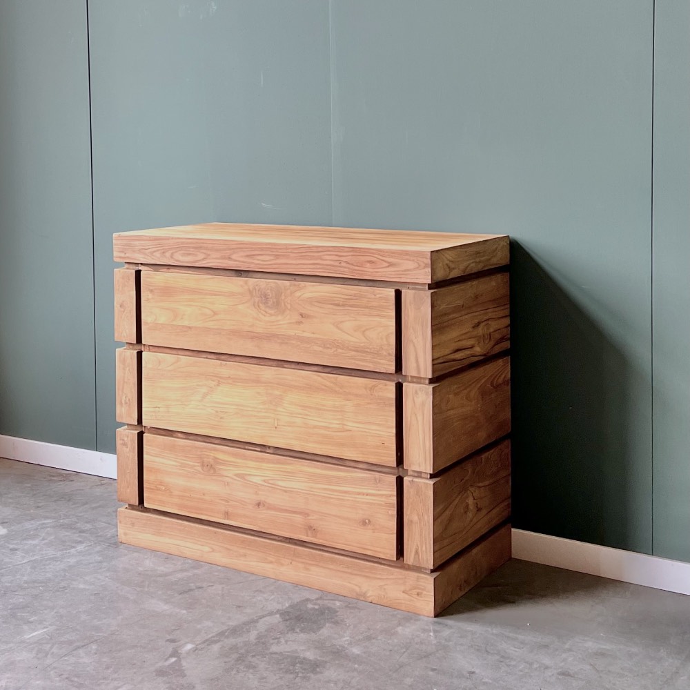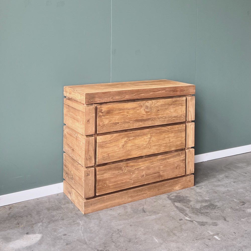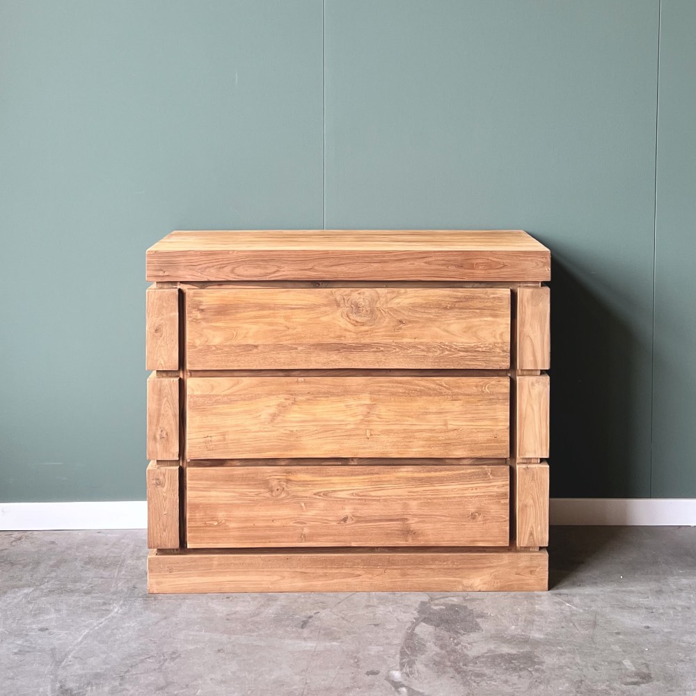 Modern vormgegeven dressoir gemaakt van teakhout. De laden gaan soepel open op een metalen rail. Bij het het ontwerp van dit dressoir is er bewust gekozen voor enkel alleen laden. De laden passen perfect in het moderne design, maar laden zijn ook super praktisch. Bij het open trekken ziet u meteen wat er in ligt en u hoeft niet te bukken om iets uit de kast te pakken. Kortom deze kast bewijst dat praktisch en esthetisch prima samen kunnen!