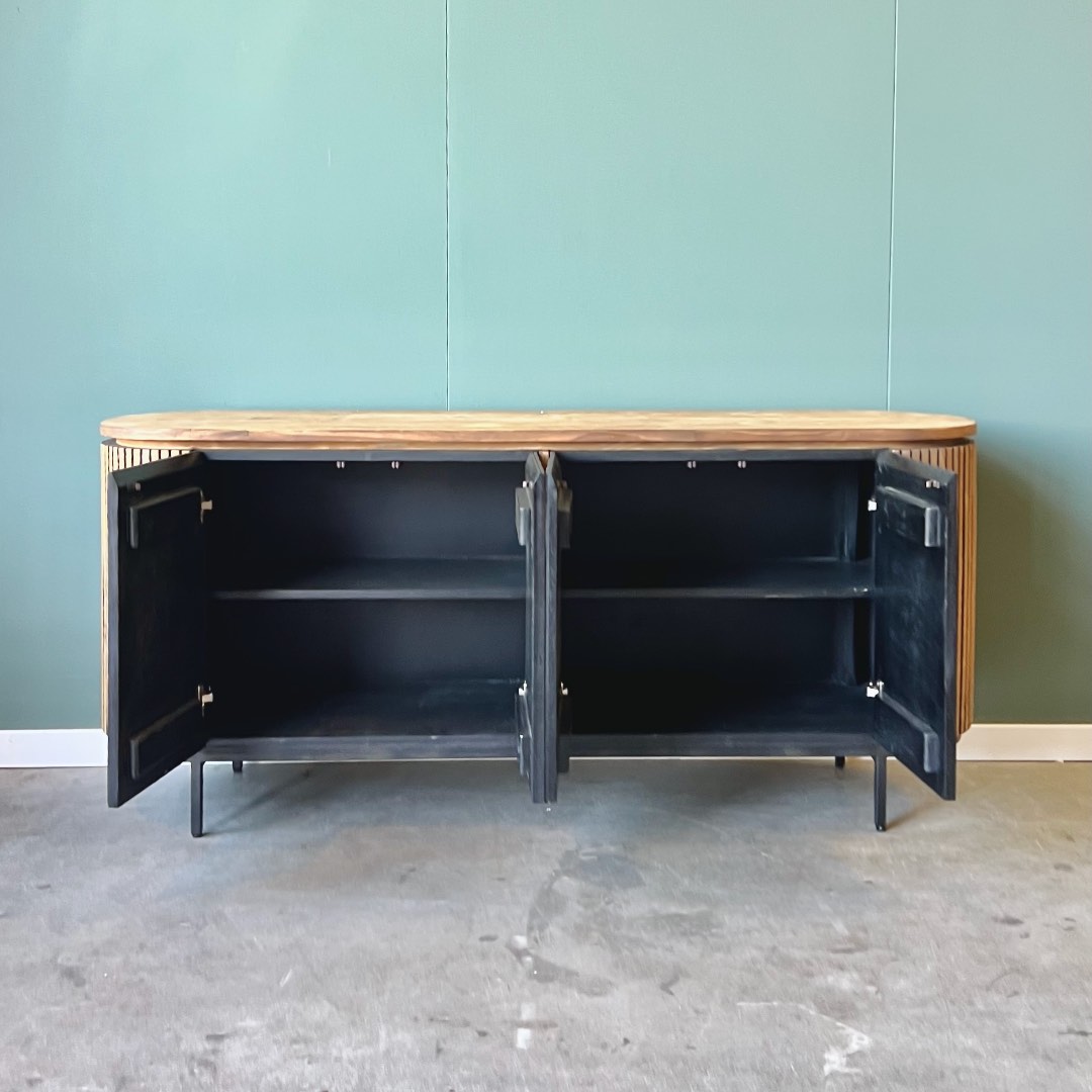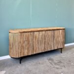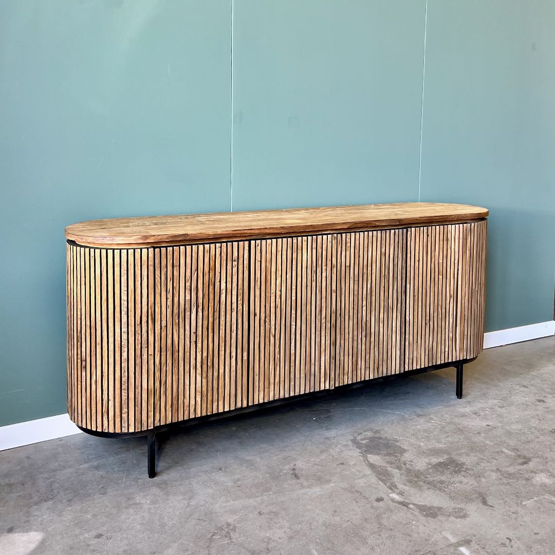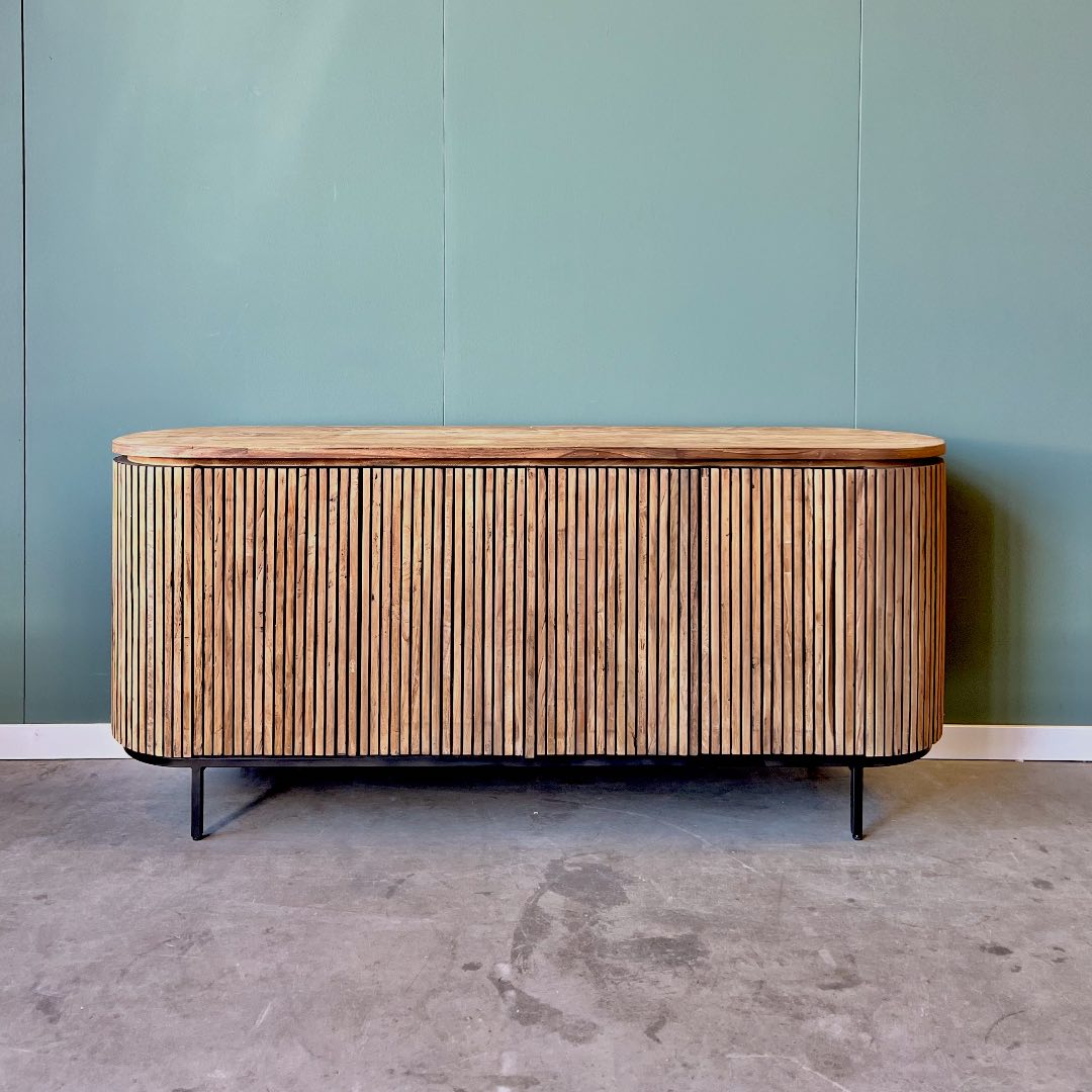 het dressoir Curve combineert zachte rondingen met een strak lattenpatroon voor een stijlvol en eigentijds design. Gemaakt van hoogwaardig gerecycled teakhout straalt dit meubel warmte, karakter en vakmanschap uit. De afgeronde hoeken zorgen voor een verfijnde, organische look die perfect past in een modern, natuurlijk interieur.