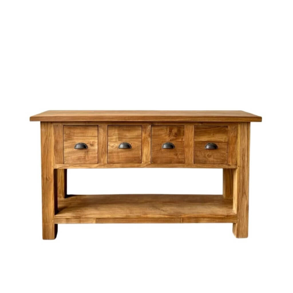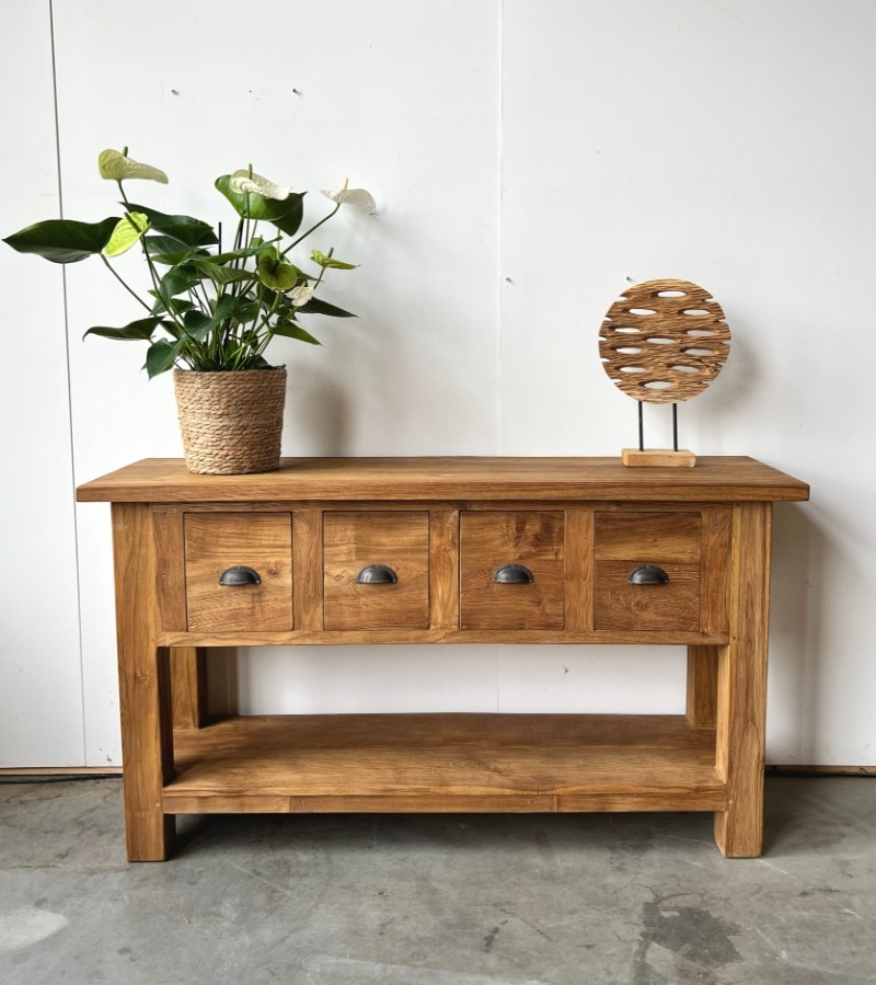 Deze leuke sidetable is door zijn afmetingen ideaal voor achter de bank of in de gang. De sidetable is gemaakt van gerecycled teakhout en heeft een iets ruwere uitstraling.