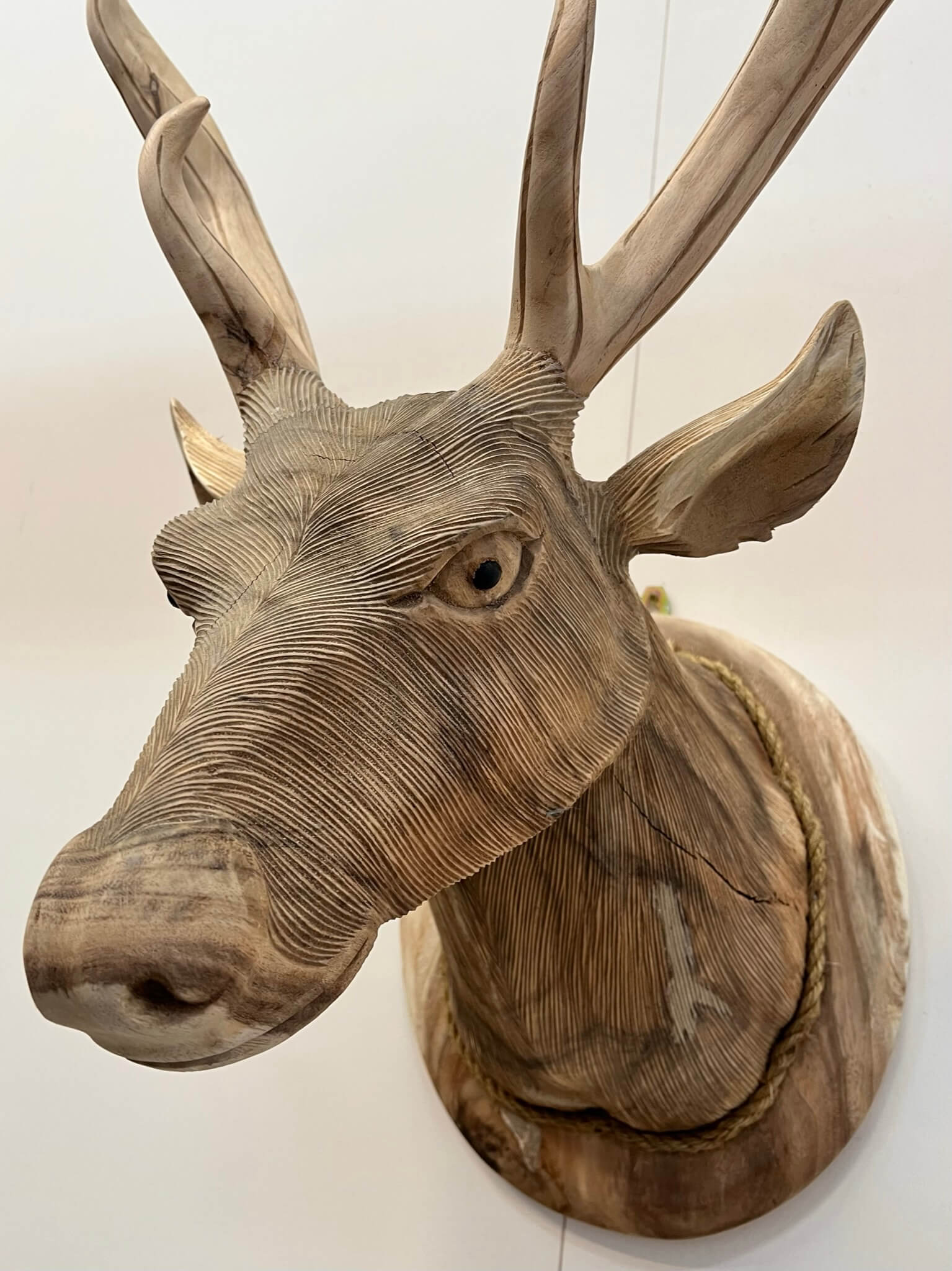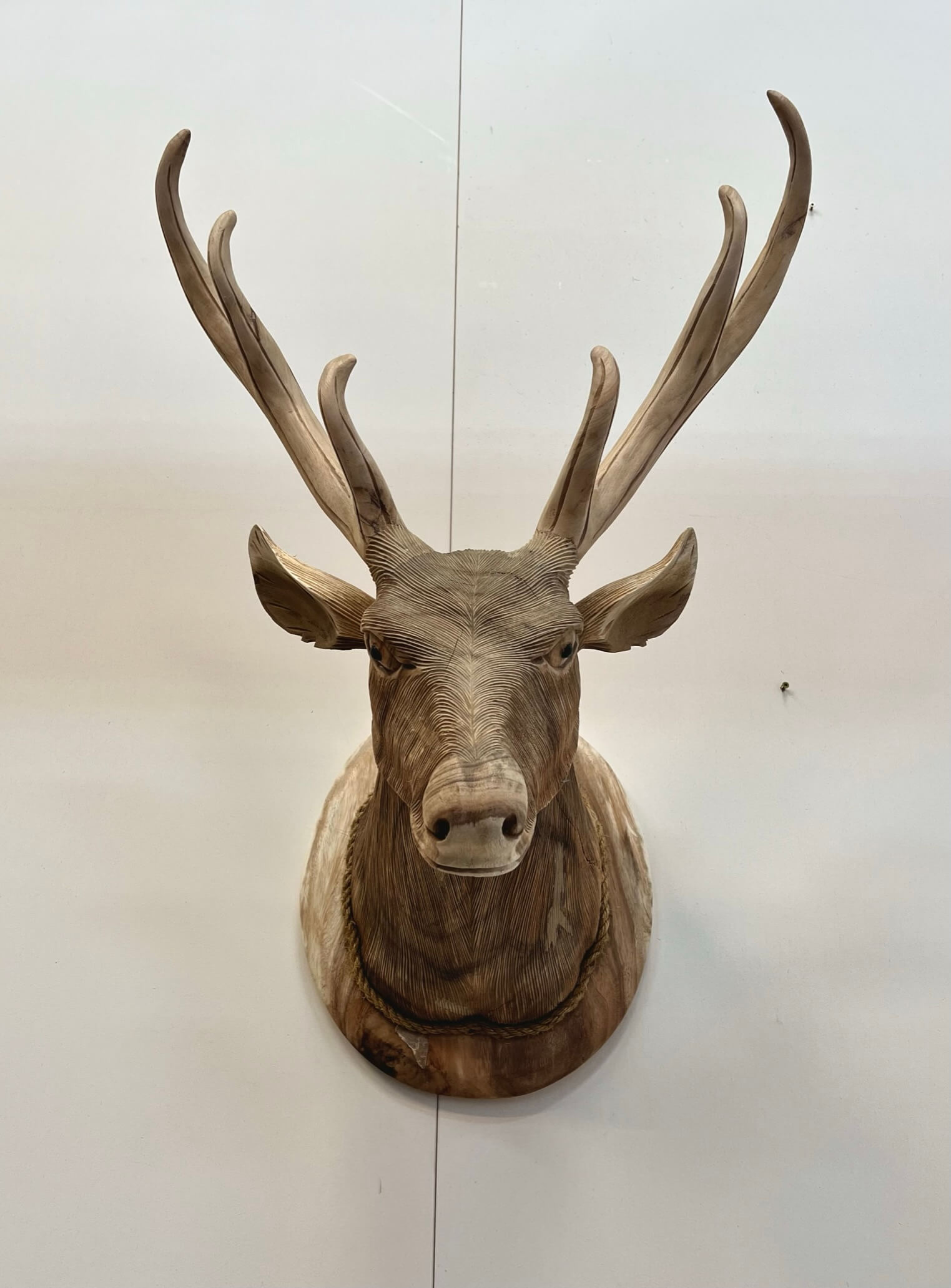 Wauw! Wat stuk Indonesisch vakwerk. Dit hertenhoofd is geschikt om op te hangen aan een muur. De blikvanger onder de overkapping of boven de schouw! De hertenkop is gemaakt van teakhout en is met de hand uitgesneden in Indonesië.