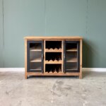 Geef je wijncollectie een elegante plek met deze unieke teakhouten wijnkast. Met zijn robuuste stalen deuren aan beide zijden en een open middenruimte voor flessenopslag, combineert deze kast een industriële uitstraling met warme, natuurlijke materialen. Perfect voor wijnliefhebbers die stijl en functionaliteit willen samenbrengen in hun interieur.