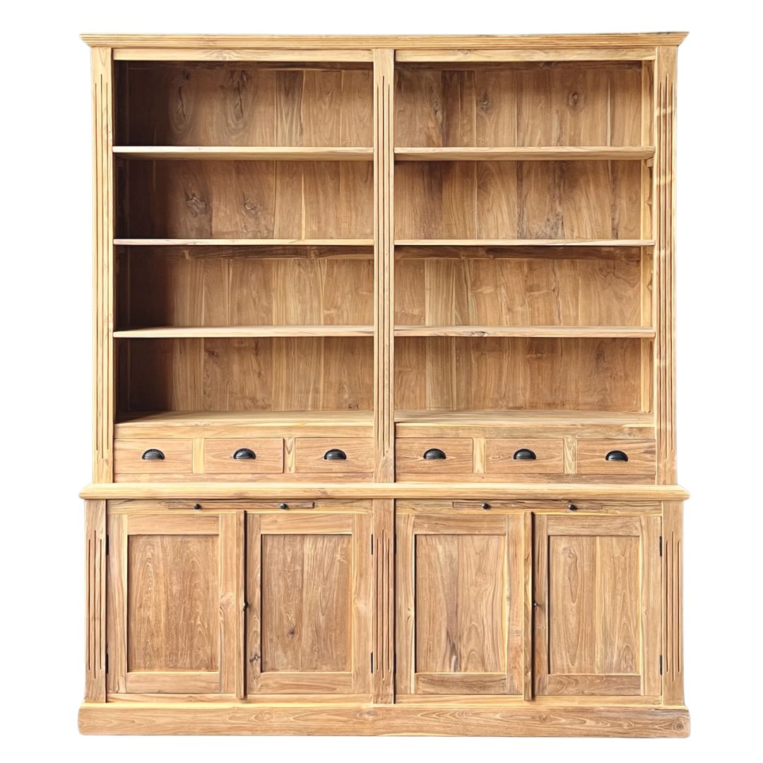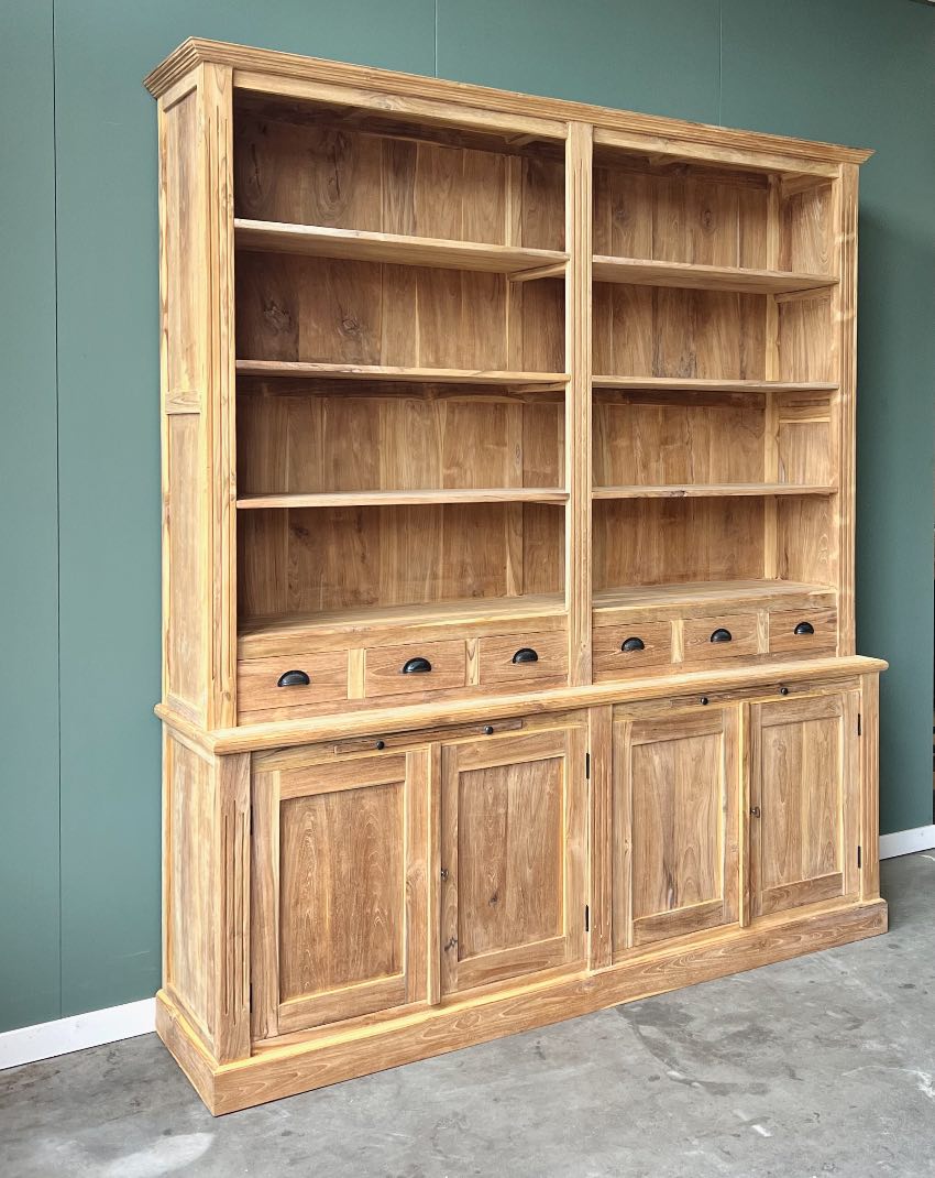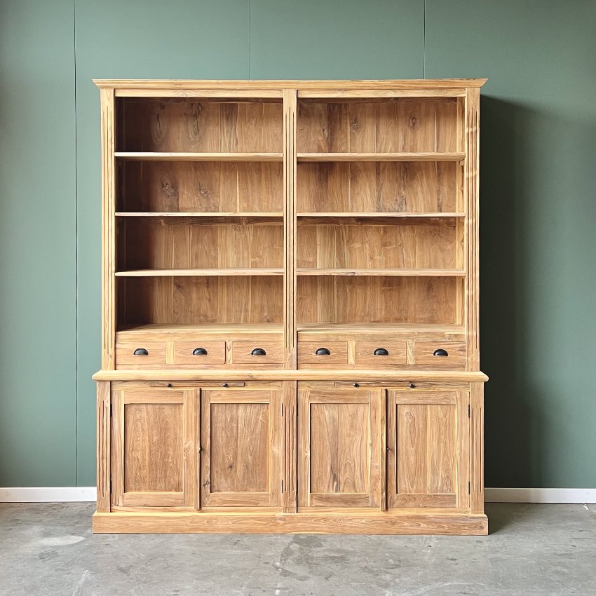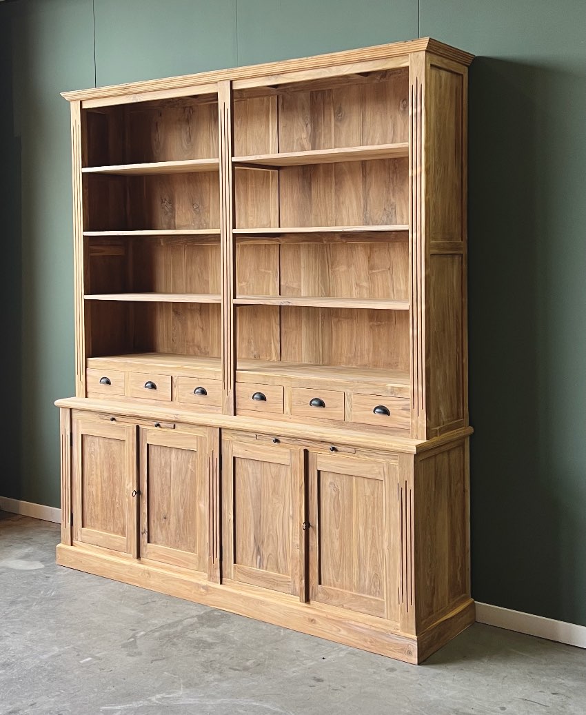 Breng de magie van een bibliotheek naar je huis met onze Klassieke Boekenkast van 200 cm breed. Perfect voor het organiseren en presenteren van je boekencollectie, deze kast voegt een vleugje klassieke elegantie toe aan elke ruimte. Maak van je huis een literaire schat met deze prachtige toevoeging. Achter de deuren vindt u een legplank. De kast is gemaakt van uitstekende kwaliteit plantage teakhout met de prachtige goud gele kleur!
