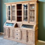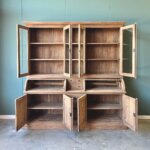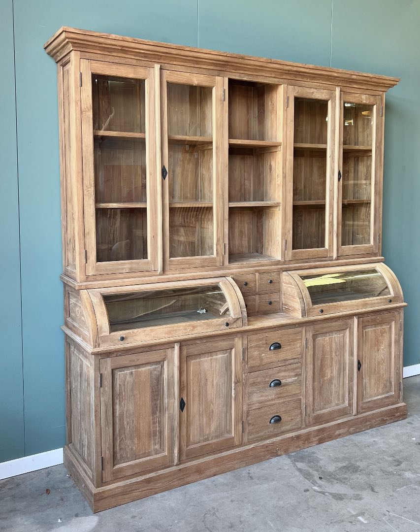 Het neusje van de zalm onder de kruidenierskasten, deze kast is gemaakt van de beste kwaliteit oud-teakhout. Het glas van de kleppen is facet geslepen.