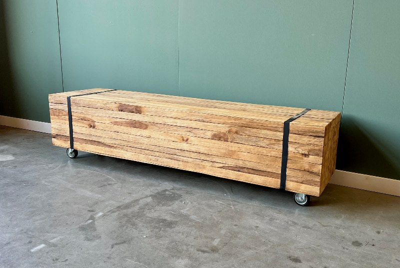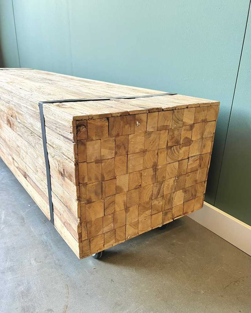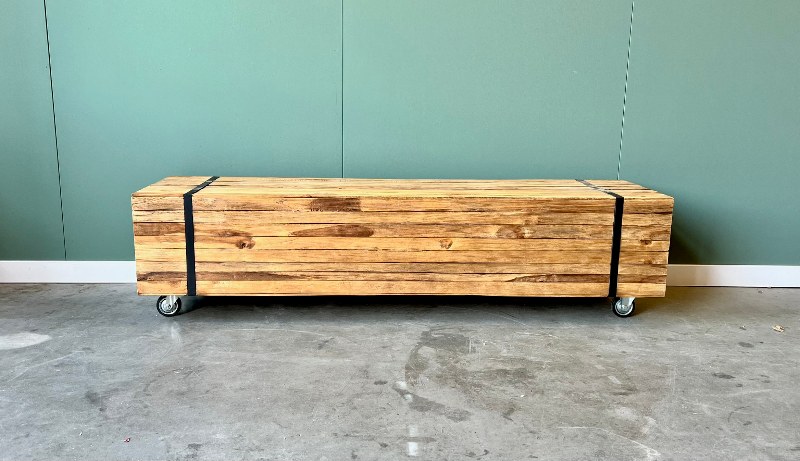 Stoere salontafel gemaakt van teakhout.