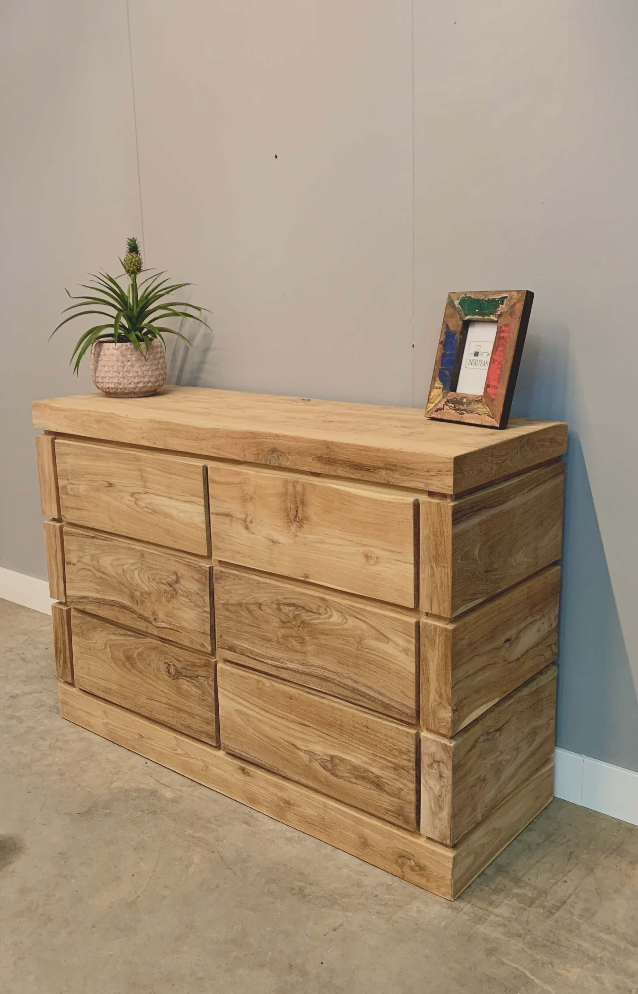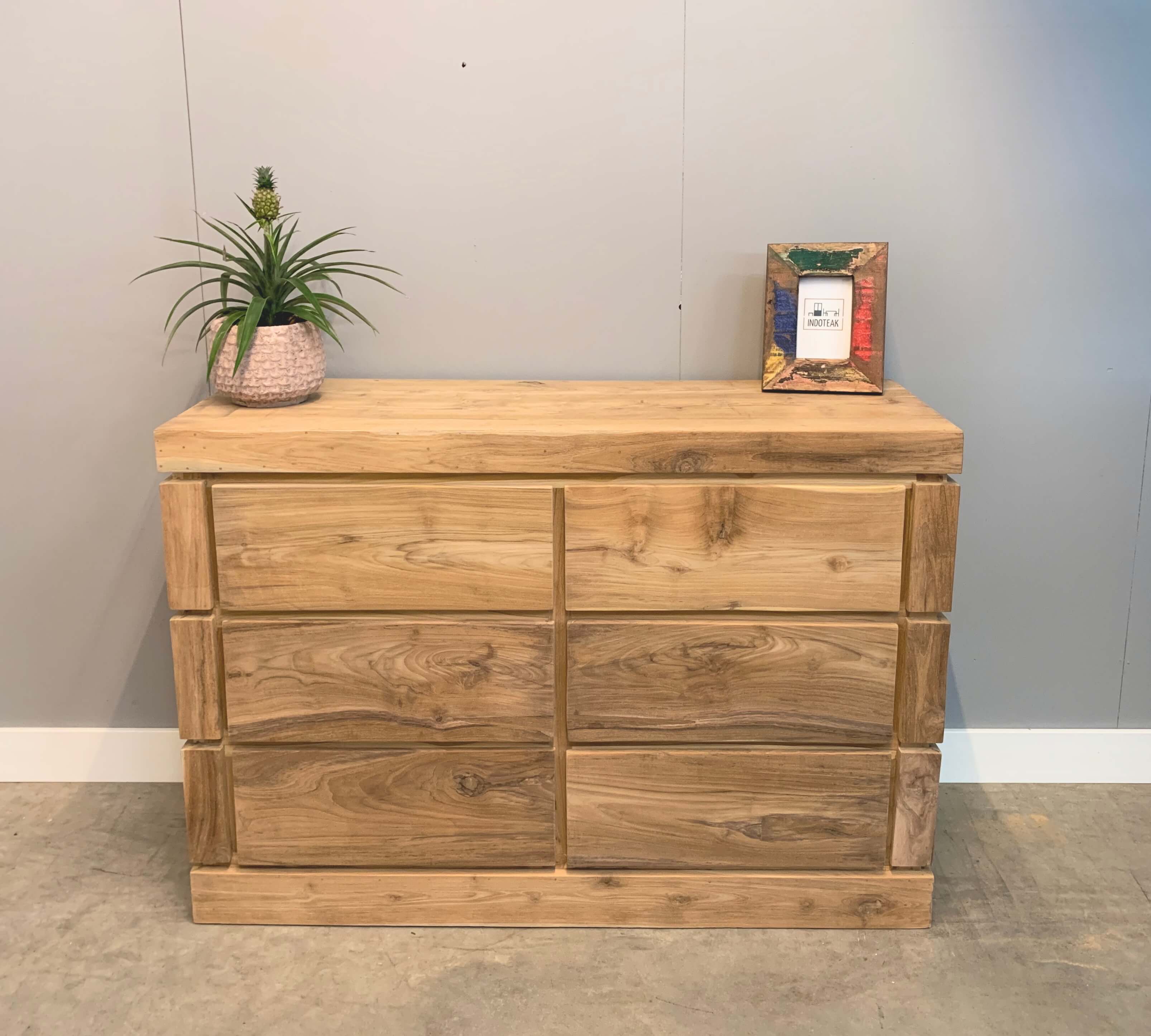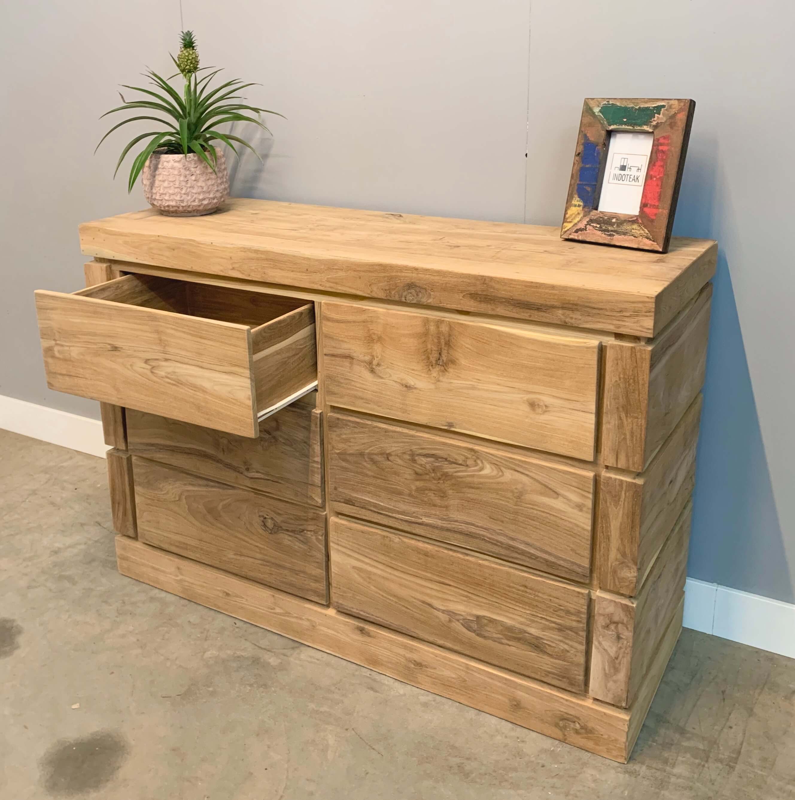 Modern dressoir van teakhout met 6 laden. Ook leverbaar in 160 cm en 200 cm breed.