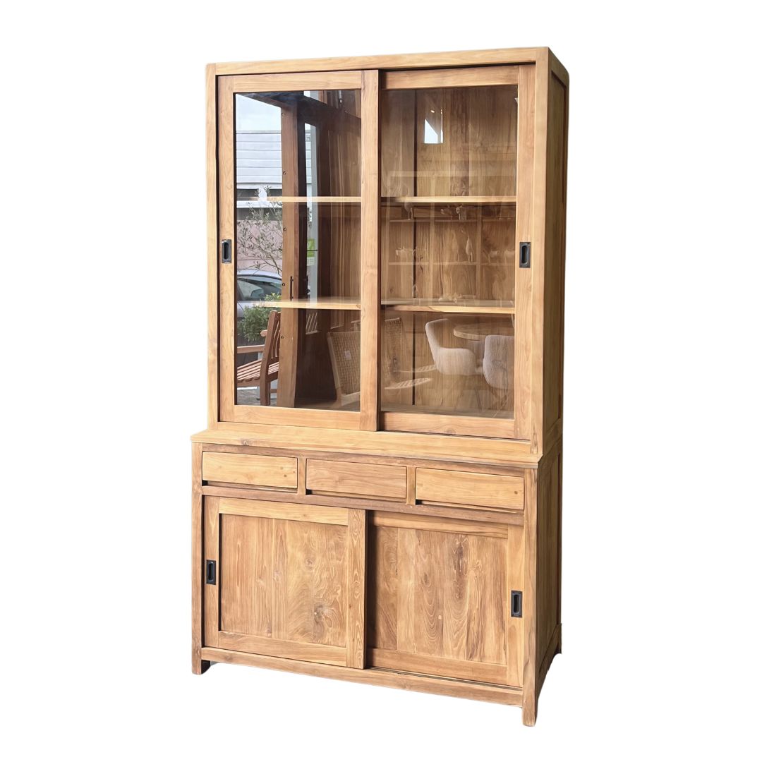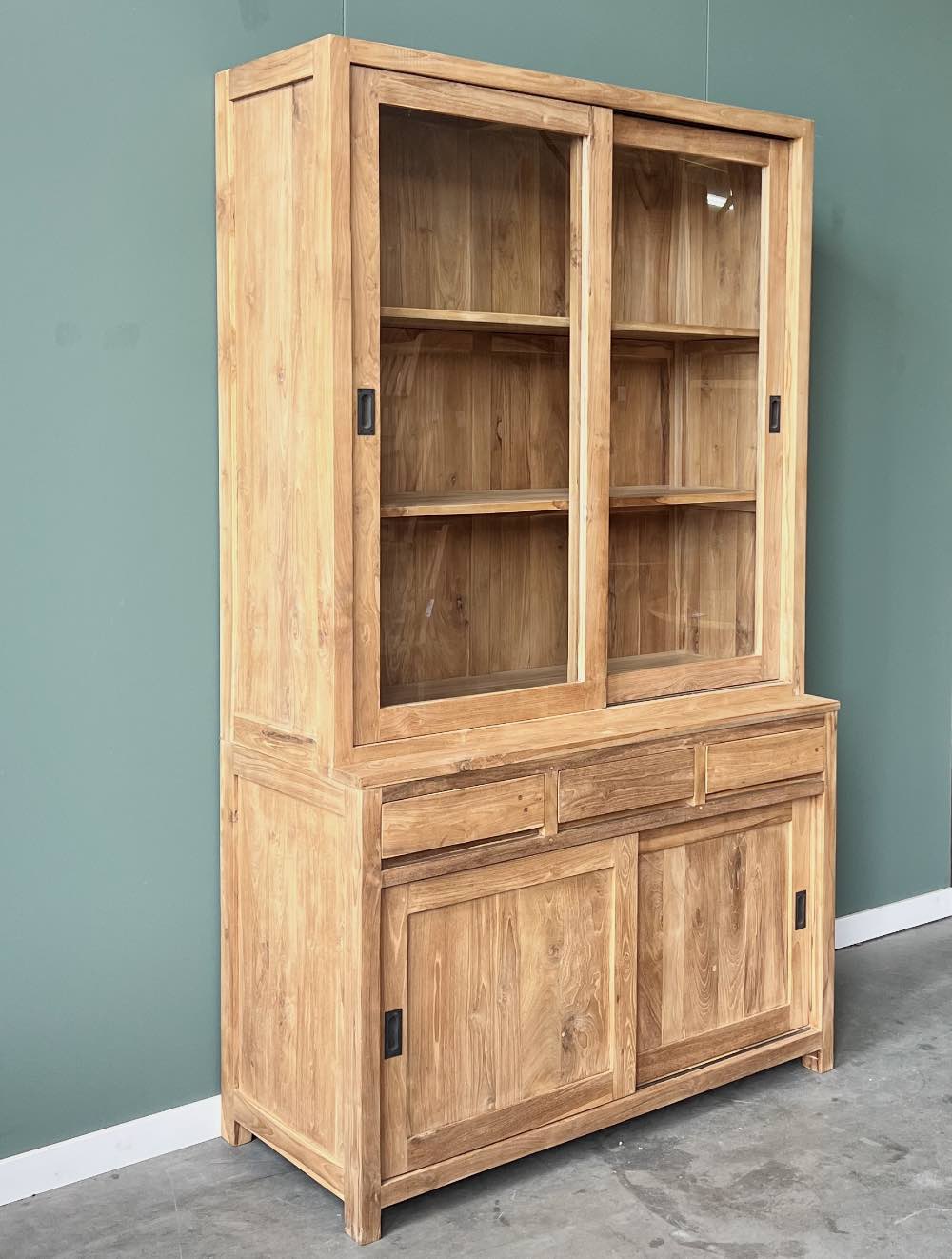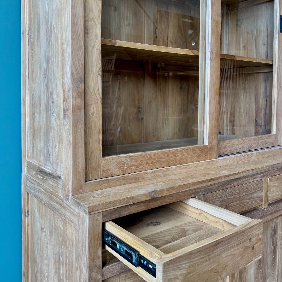 Moderne buffetkast gemaakt van uitstekende kwaliteit gerecycled teakhout. De kast heeft een minimalistisch design, hierdoor past deze kast in veel verschillende woonstijlen. De laden en deuren gaan soepel open op een metalen rail.