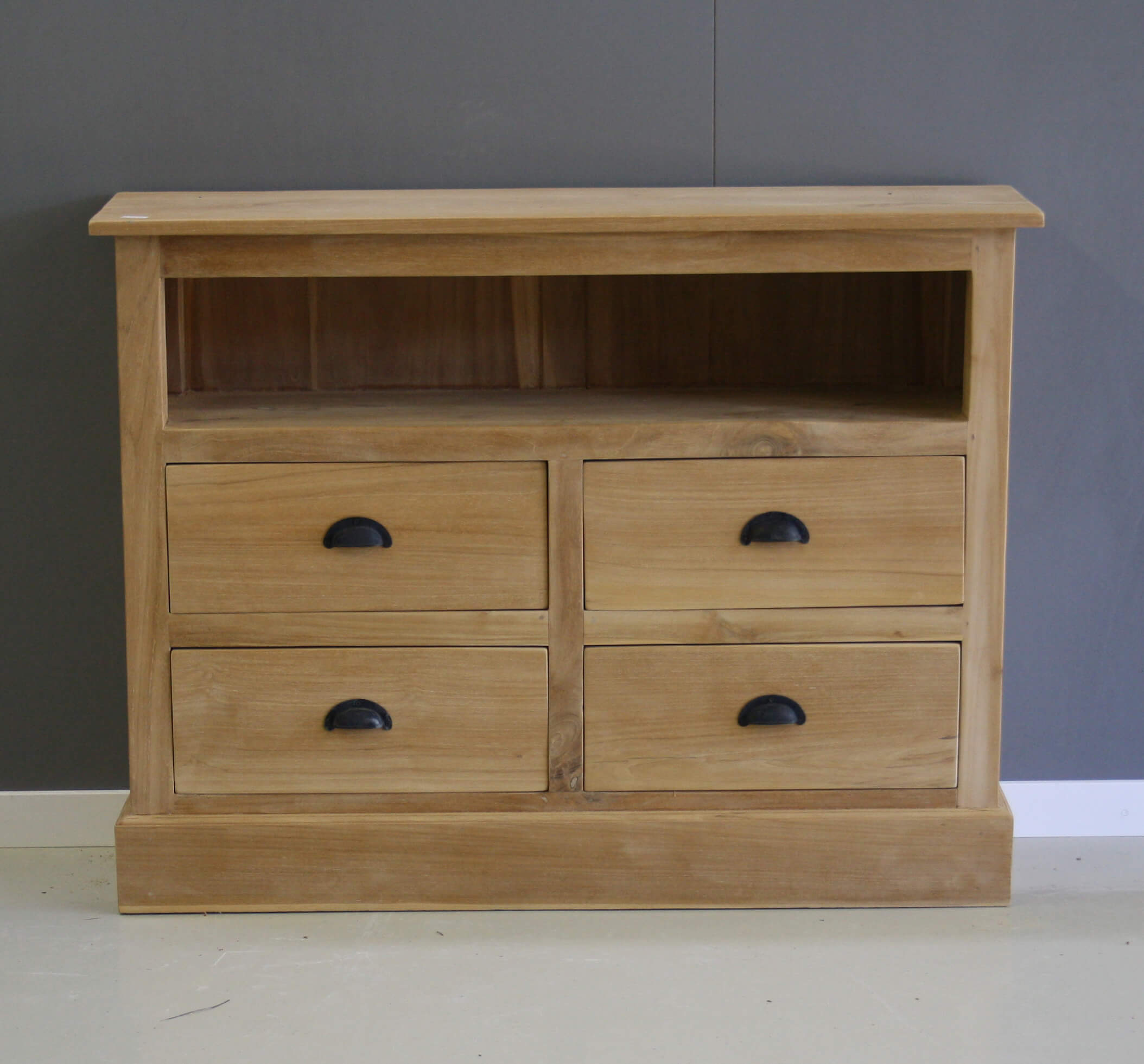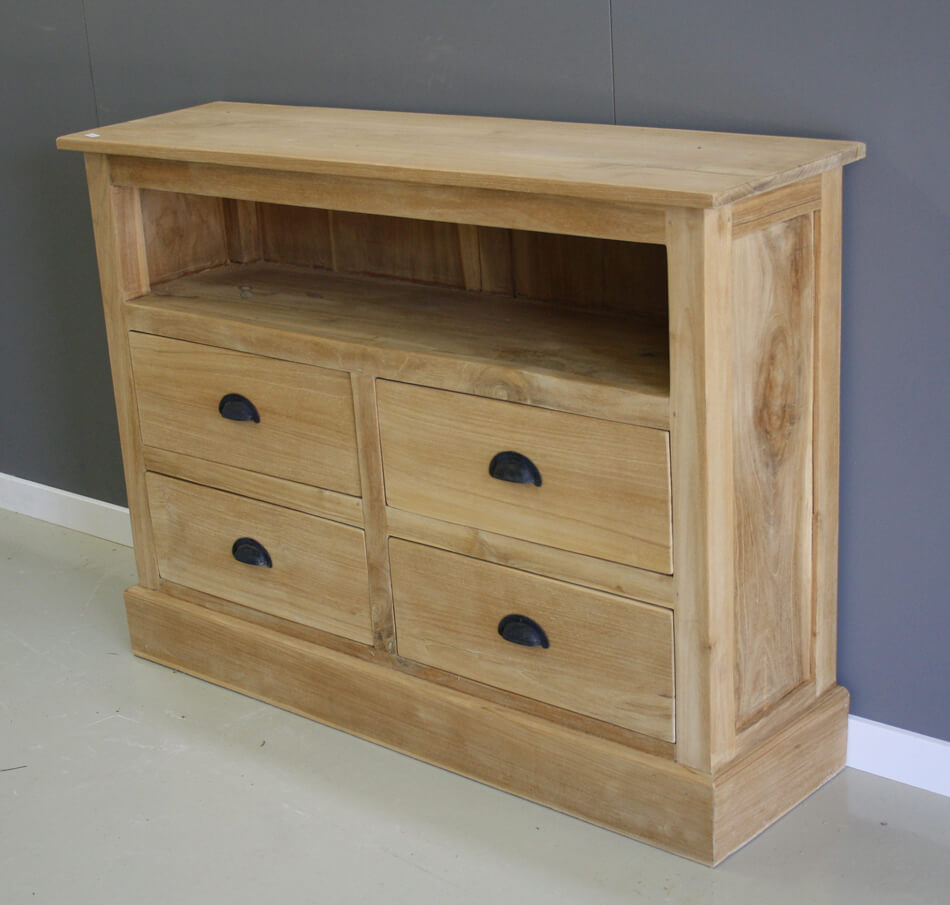 Ondiep tv meubel met vier laden Delft. Dit meubel wordt vaak in een slaapkamer als tv meubel gebruikt.