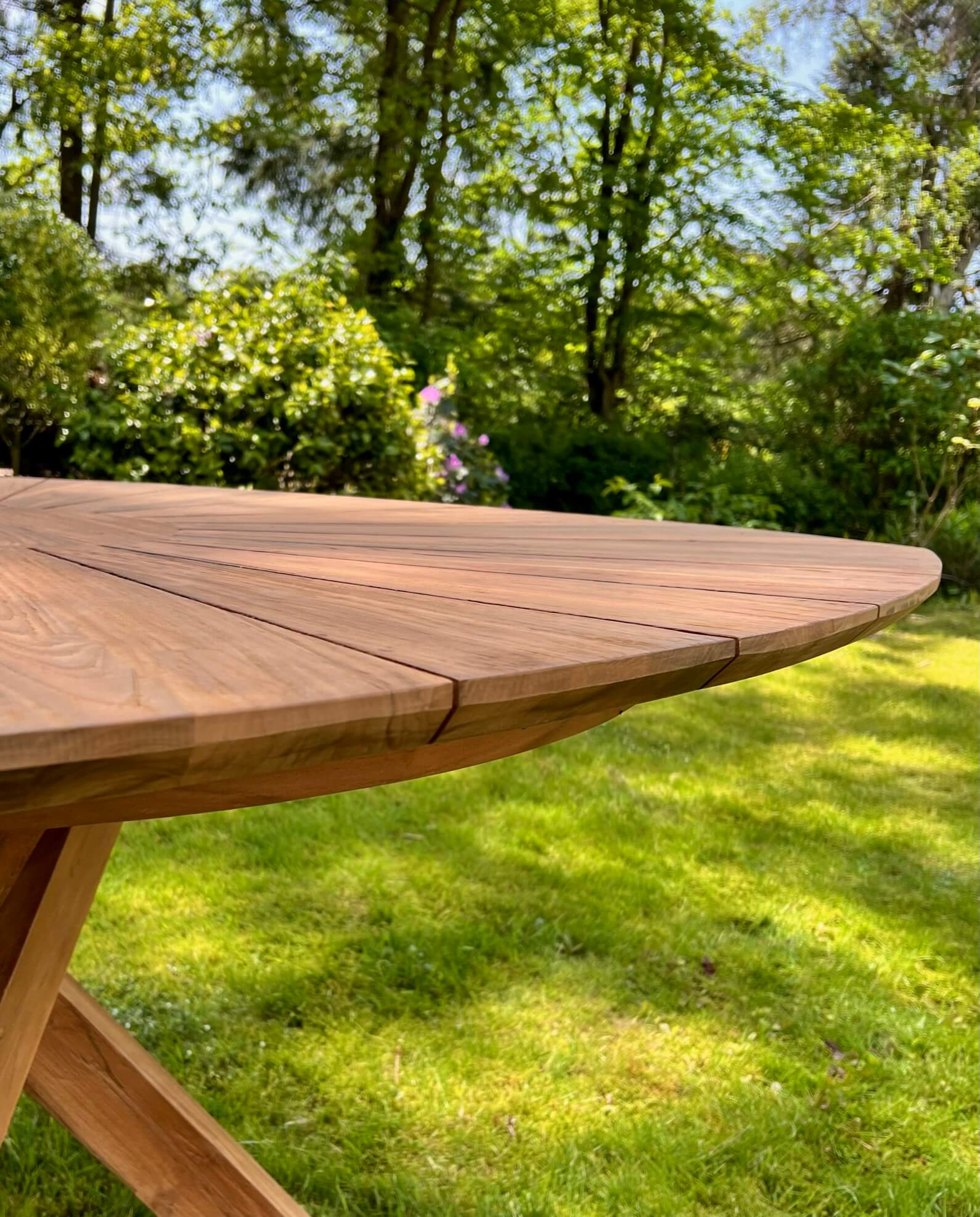 Onderhoud, teakhouten tuinmeubels zijn eenvoudig in het onderhoud. Wij raden aan om de tafel na de winter goed schoon te maken met groene zeep of een woodcleaner. Na het schoonmaken kunt u de tafel behandelen met olie, hiermee wordt het hout gevoed wat zorgt voor een nog langere levensduur van uw tuintafel.