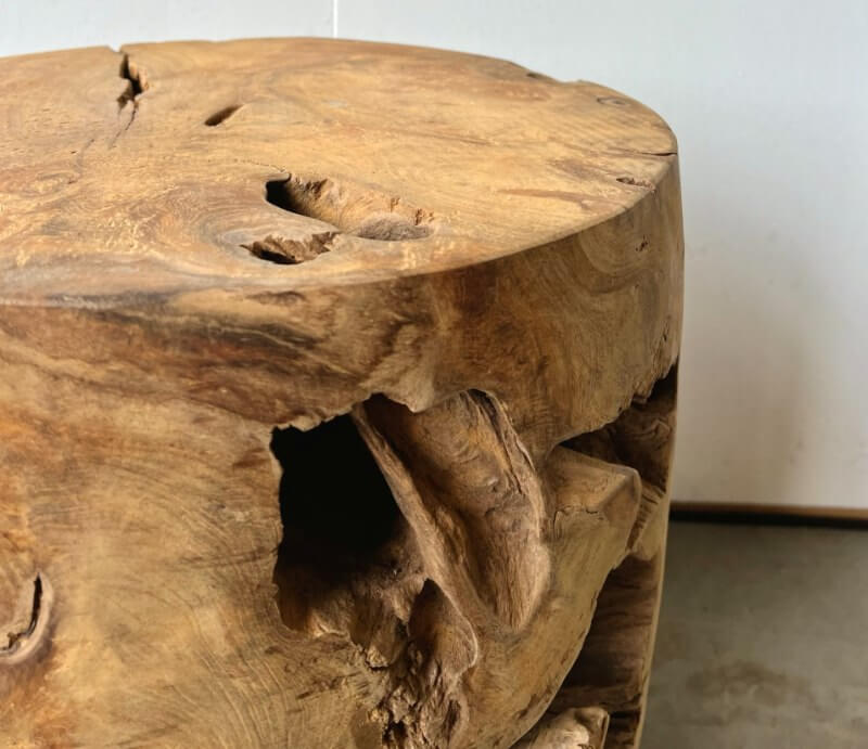 Robuuste bijzettafel gemaakt uit een stuk teakhout.
