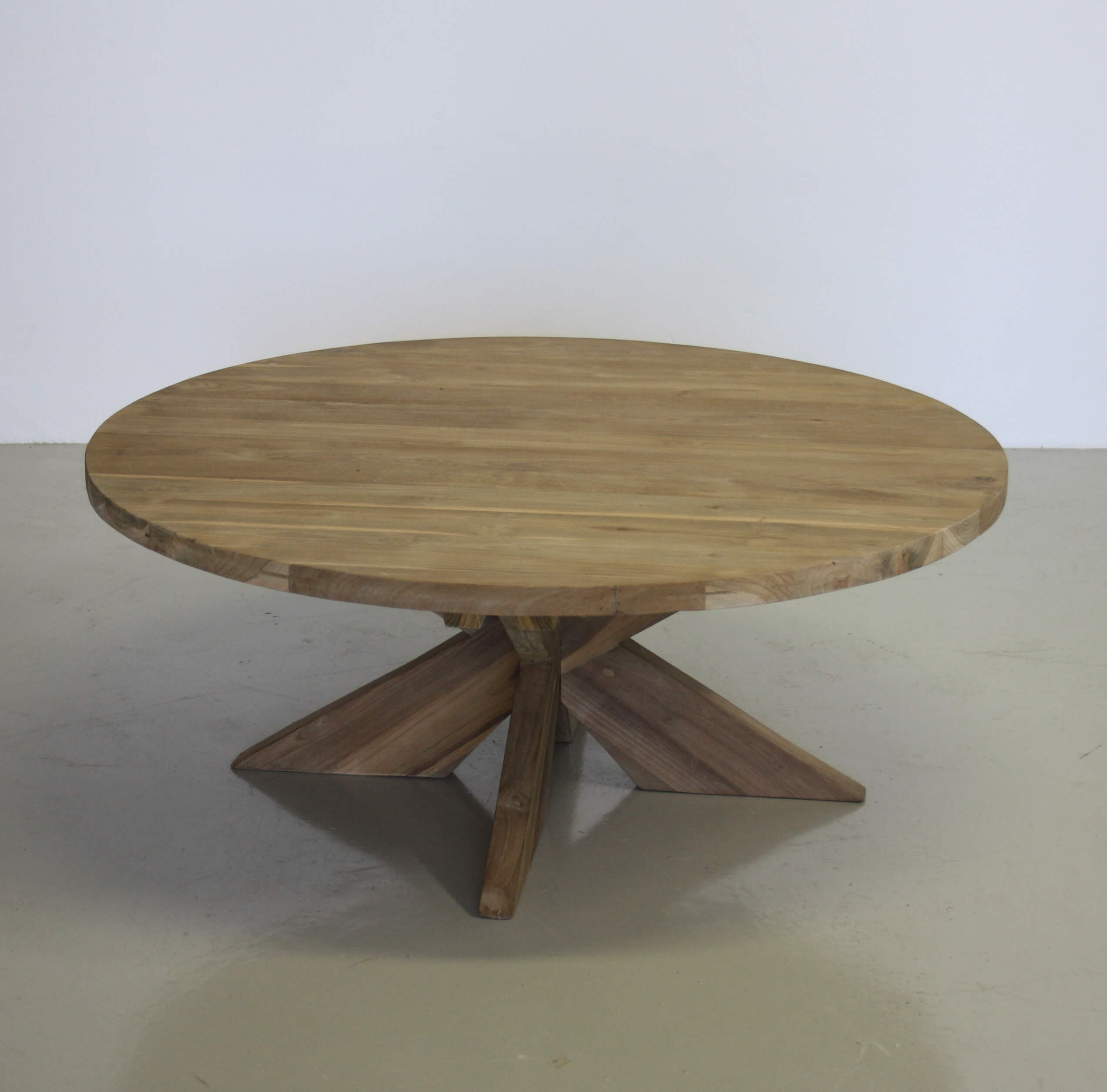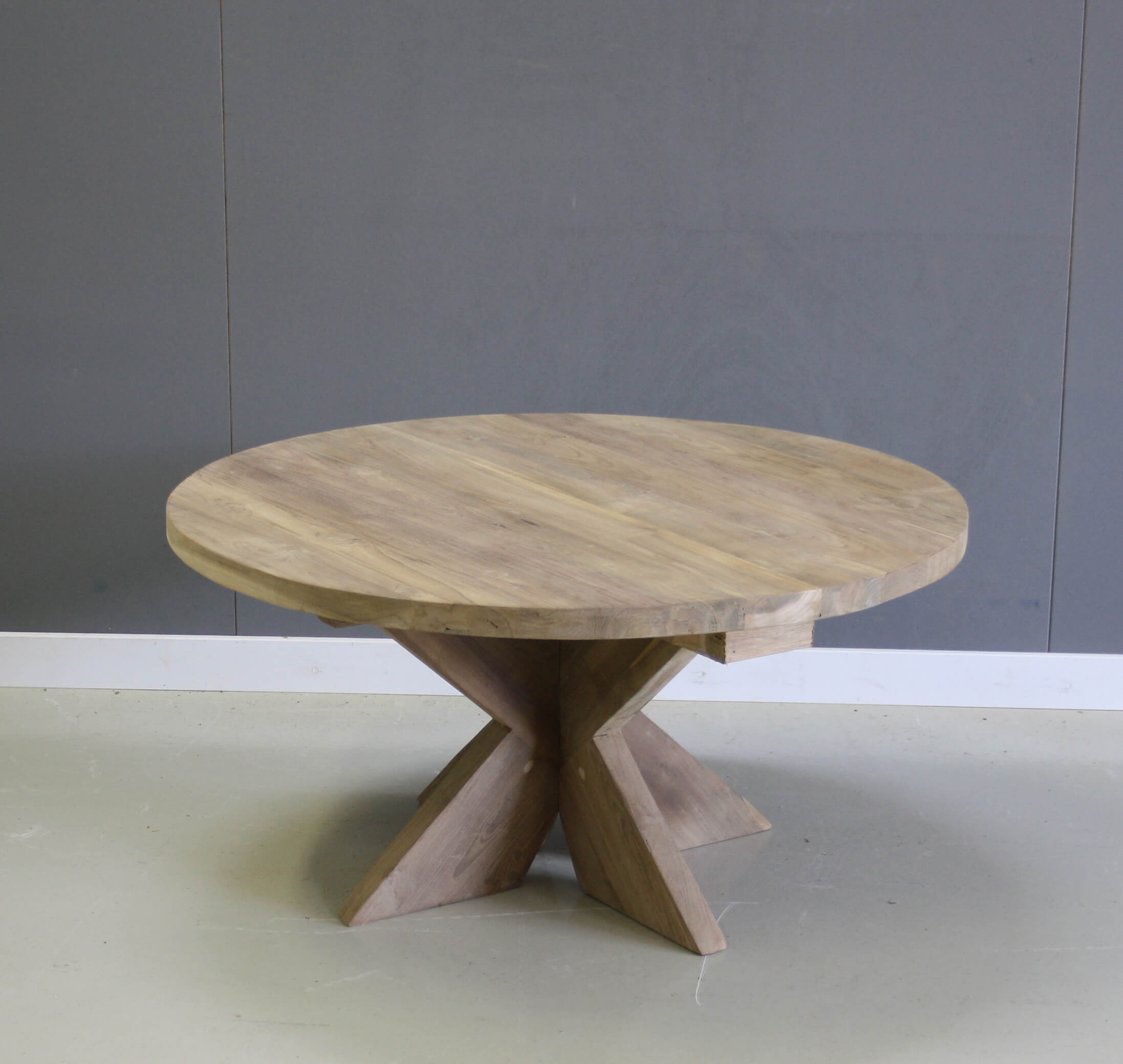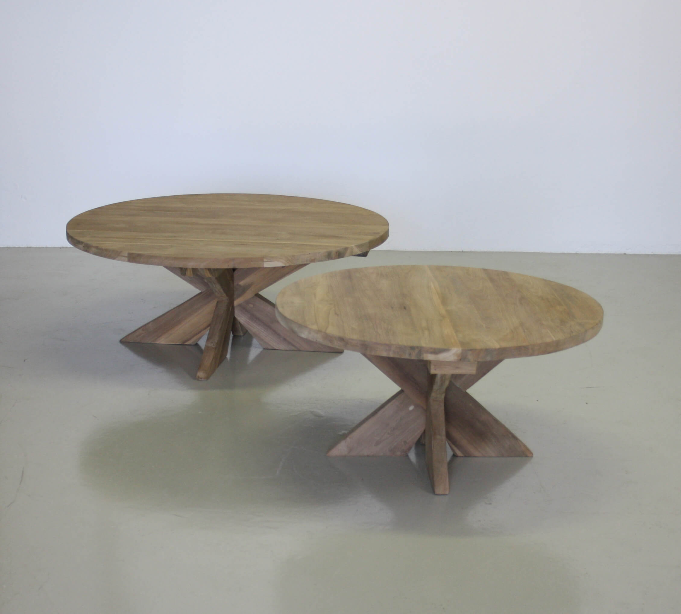 Ronde teakhouten salontafels met een kruispoot. Deze tafels passen uitstekend bij onze ronde of ovale teakhouten eettafels met kruispoot. De salontafels hebben een hoogte van 40cm.