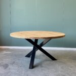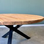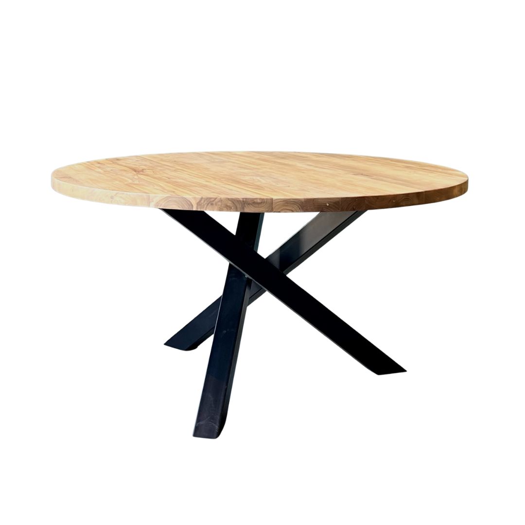 Deze ronde eettafel straalt rust en eenvoud uit door het glad afgewerkte blad met een rechte rand. Gemaakt van gerecycled teakhout met FSC-keurmerk, is deze tafel niet alleen stijlvol maar ook duurzaam. De stalen driepoot met subtiele twist zorgt voor een moderne, industriële uitstraling. Een tijdloos ontwerp dat moeiteloos past in zowel een minimalistisch als een warm interieur.
