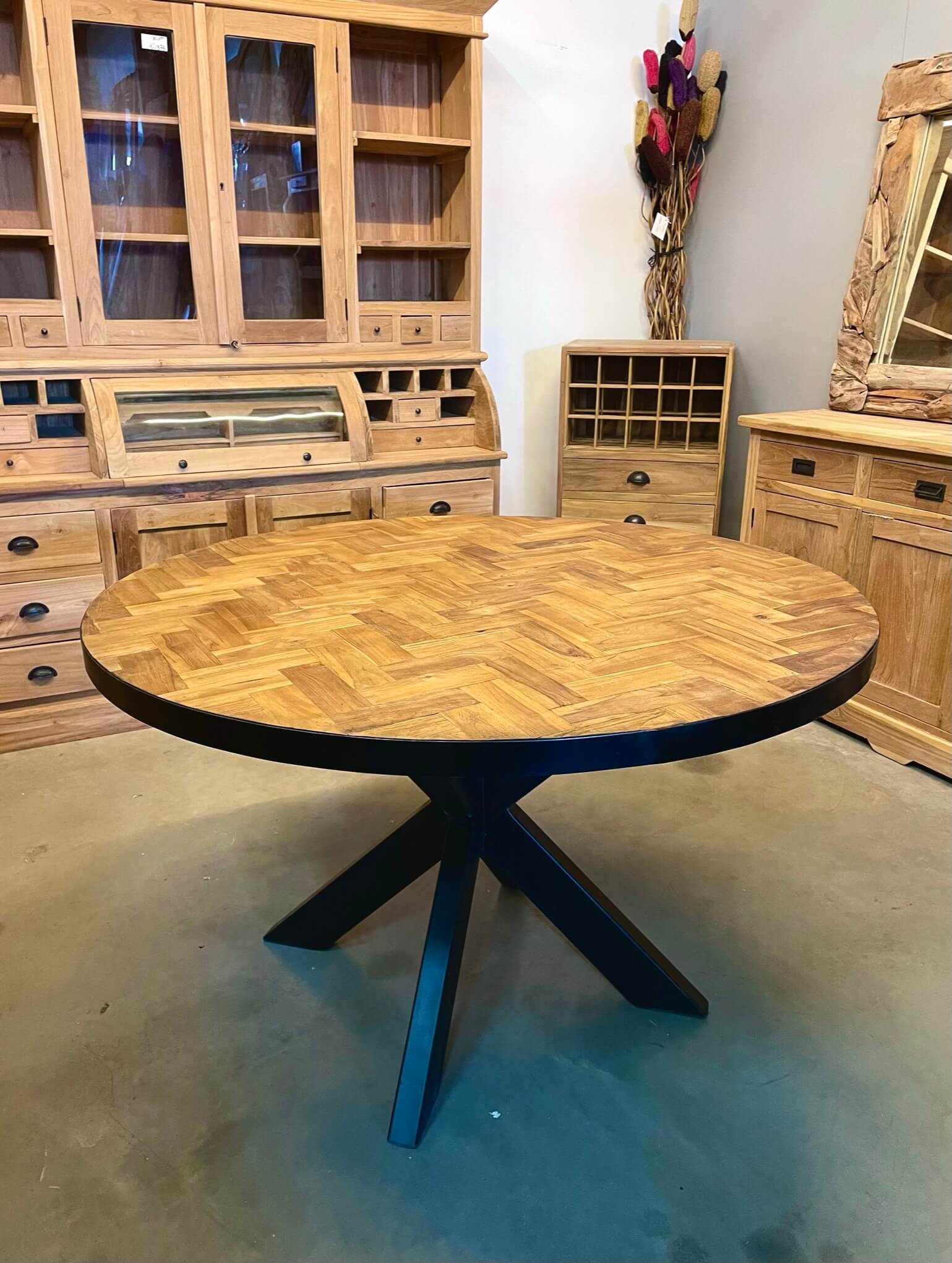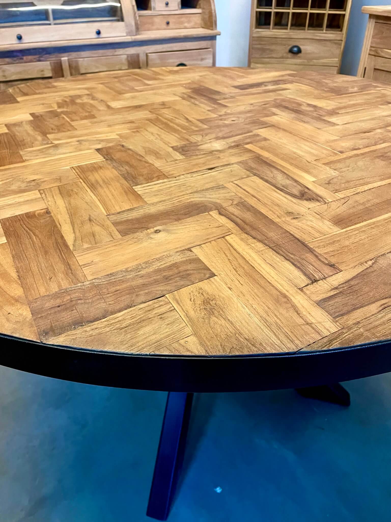Visgraat is helemaal hip! Hierdoor past deze teaktafel perfect in de trend van nu.