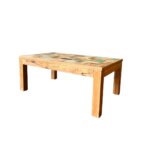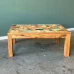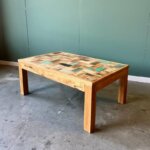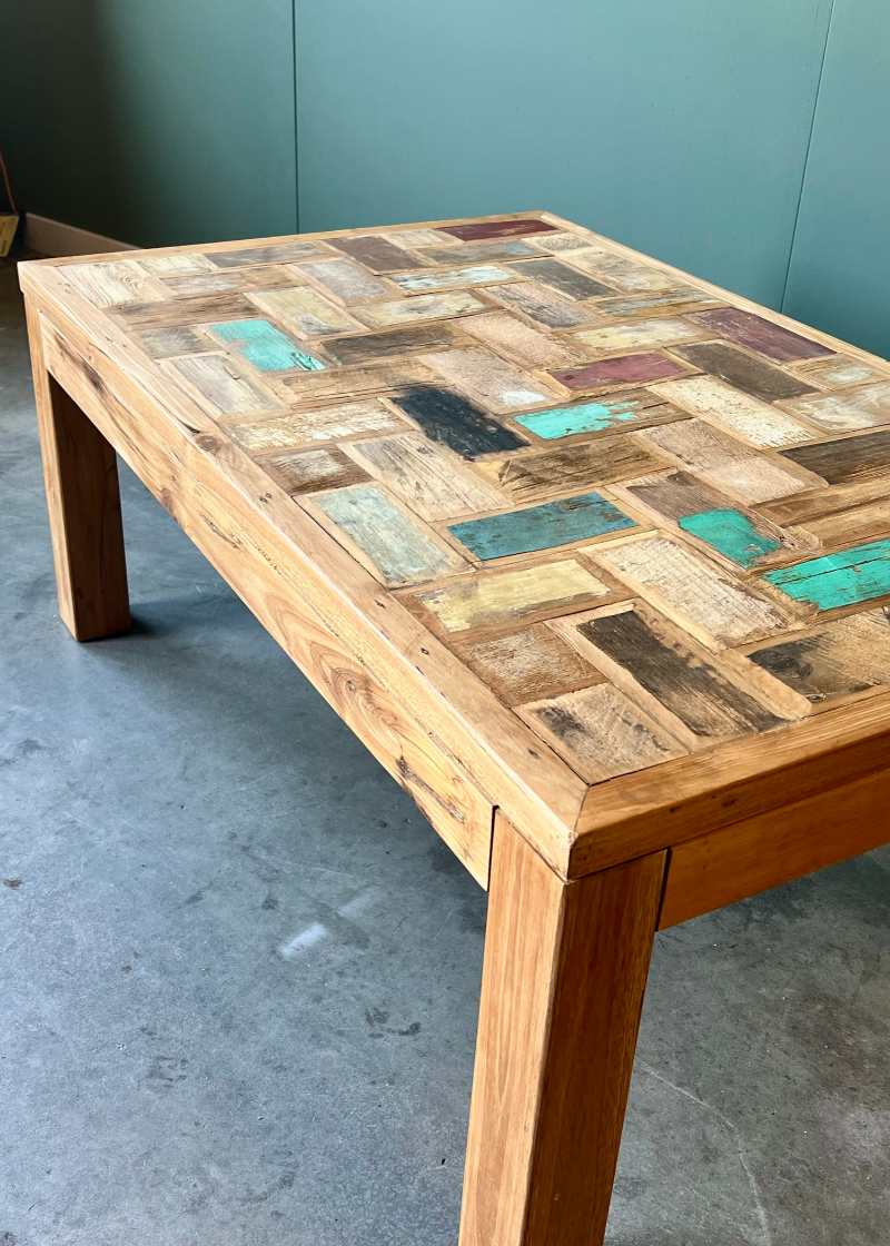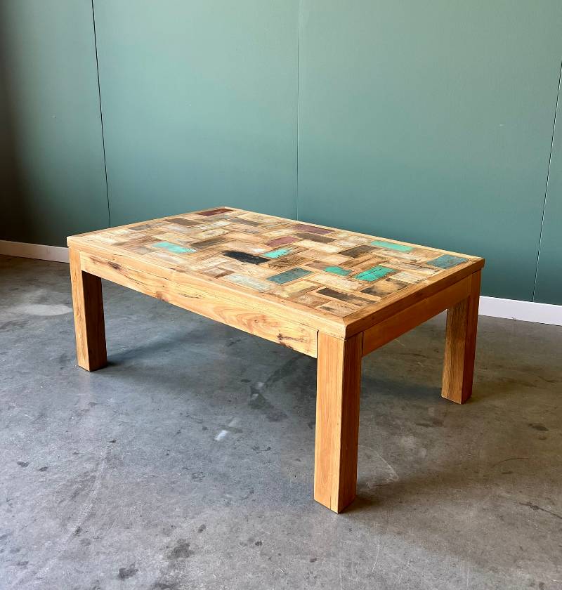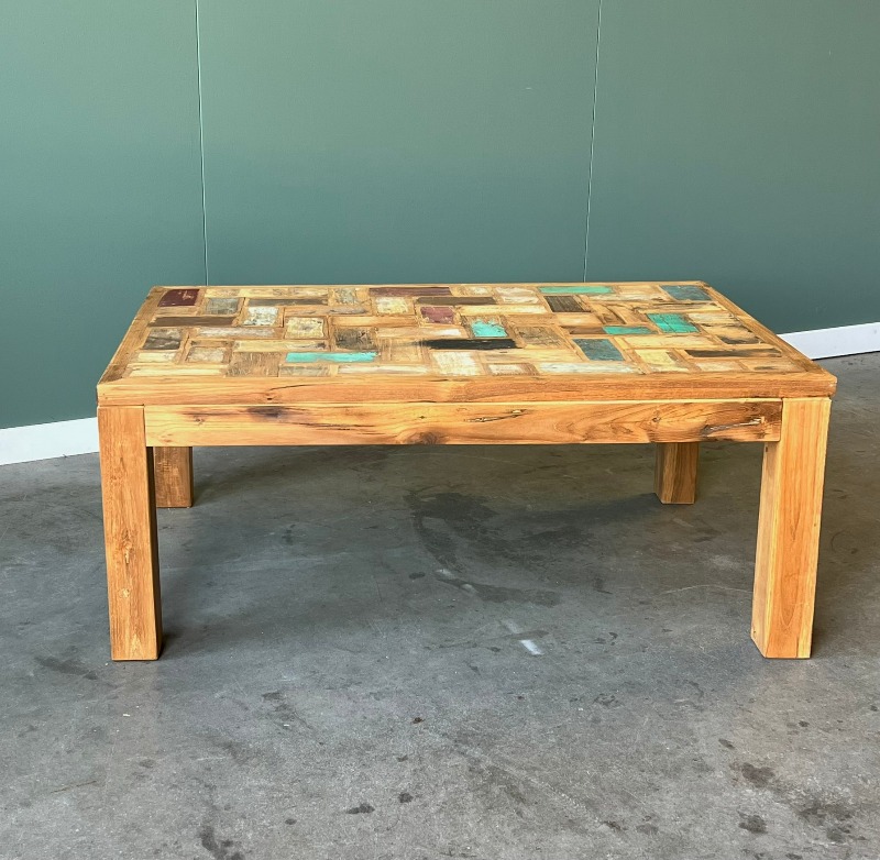 Niet zo doorsnee, heel bijzonder, gedurfd, stijlvol, kleurrijk! Fijne salontafel van teakhout.