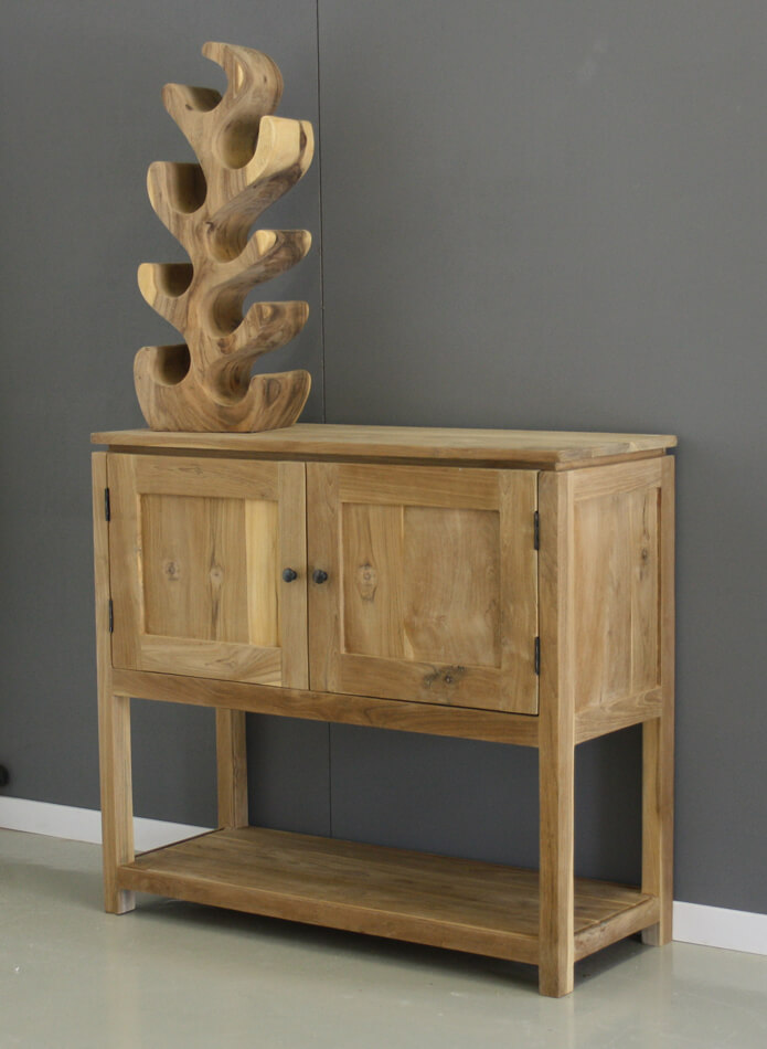 Sidetable van teakhout met twee deuren.