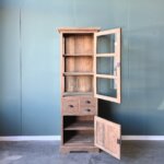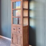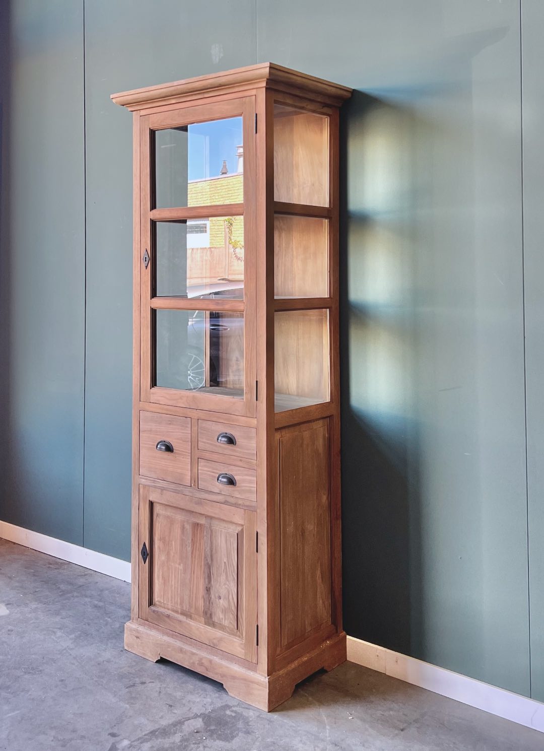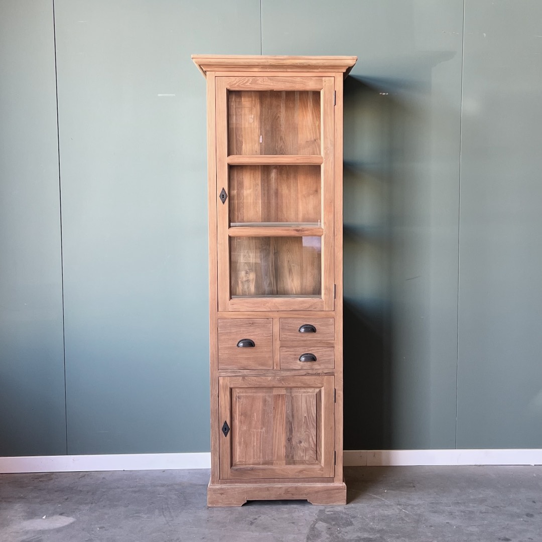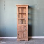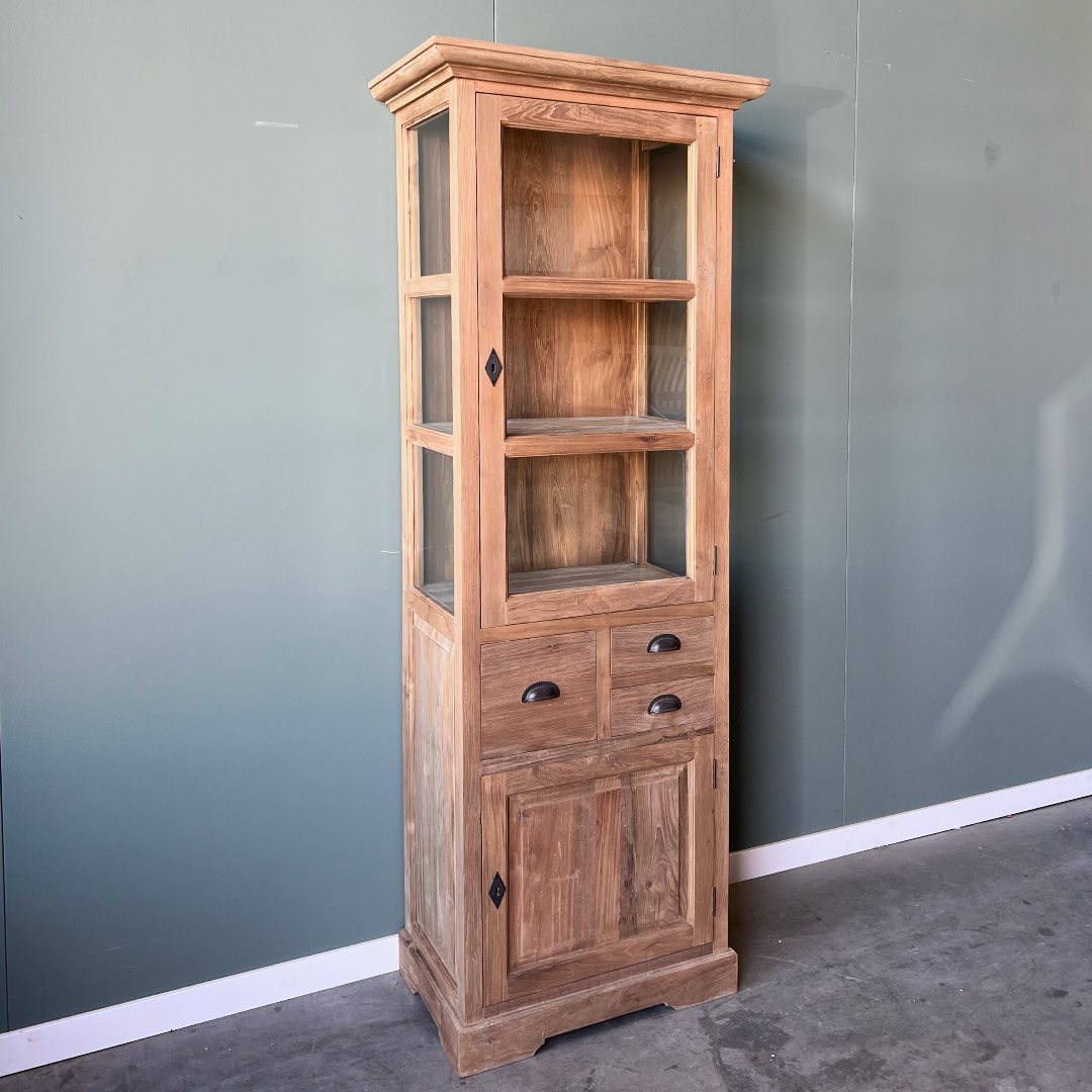 Smalle vitrinekast Arnhem. Heel geschikt om uw dierbare verzameling in uit te stallen. Aan de zijkanten zitten ook raampjes.