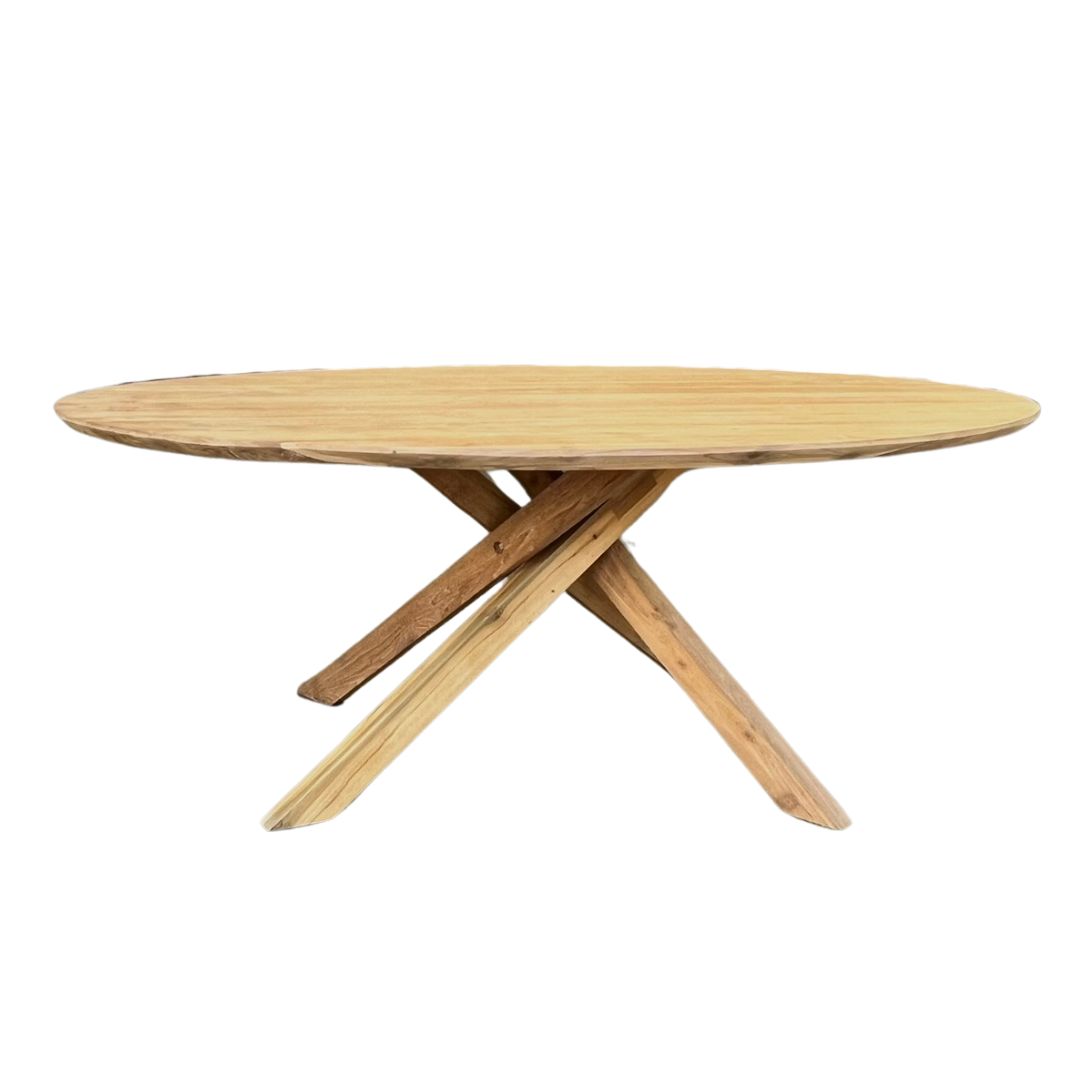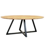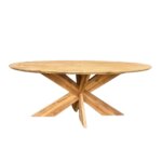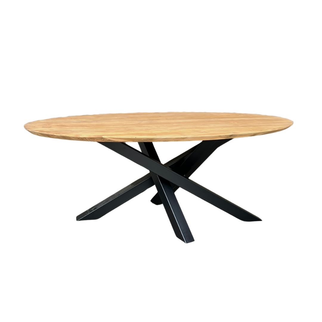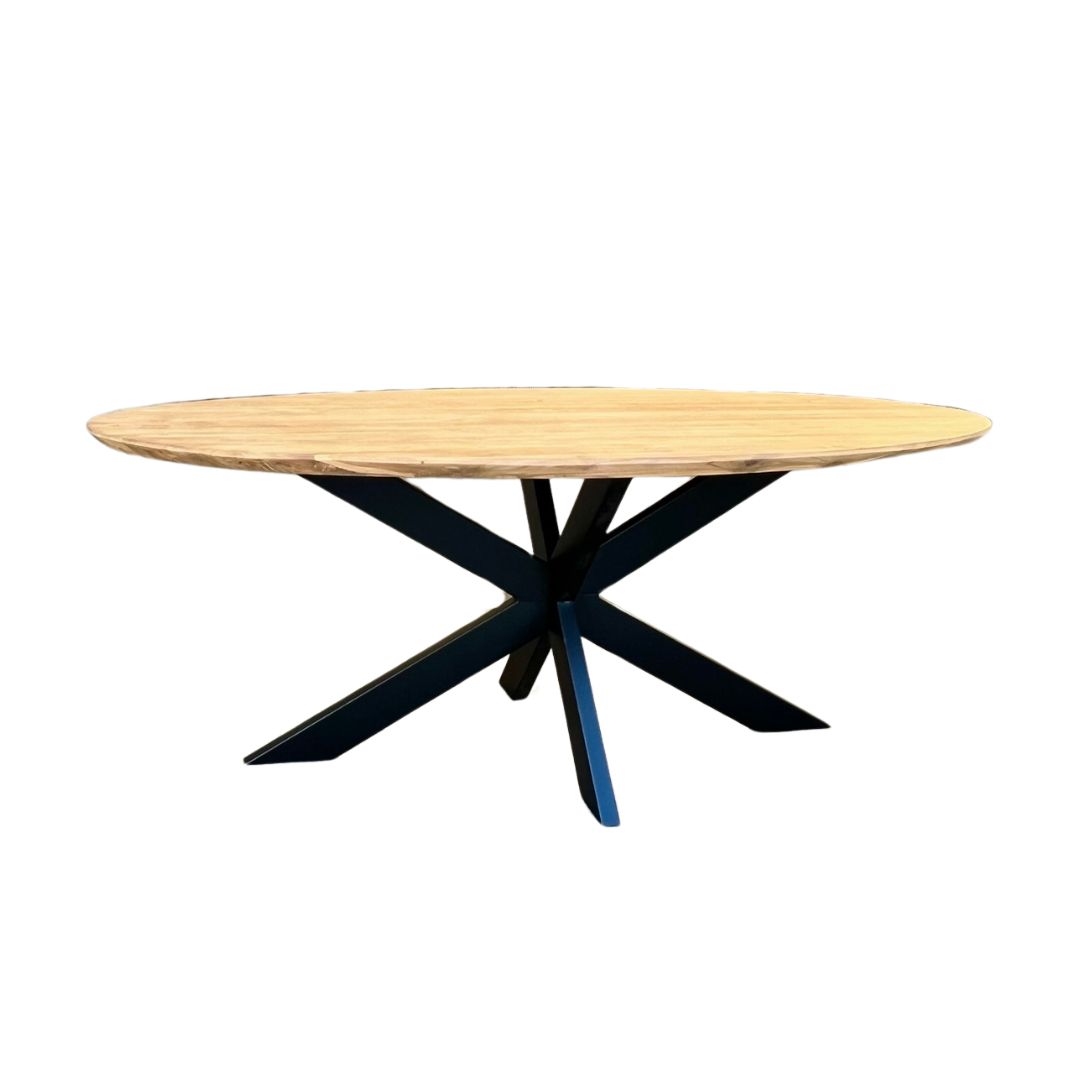 Ontdek ons 4 cm dikke ovale tafelblad met een verjongde rand van gerecycled teakhout. Kies zelf een poot en creëer een unieke tafel die perfect past in jouw interieur!