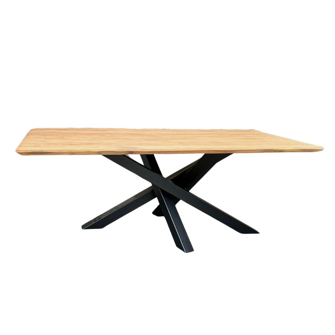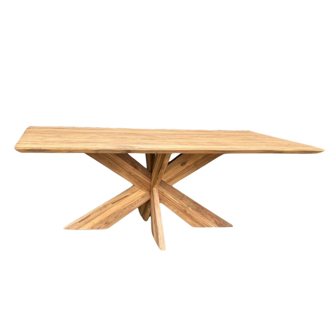 De tafel is gemaakt van de beste kwaliteit gerecycled teakhout met een fsc keurmerk. Het tafelblad is glad afgewerkt en heeft een recht rand.