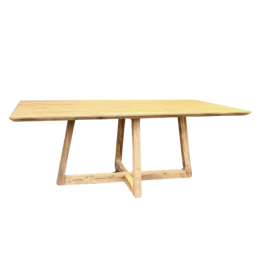 Ontdek ons 4 cm dikke rechthoekige tafelblad met verjongde rand van gerecycled teakhout. Ondanks dat het blad 4 cm massief is, oogt deze niet zo. De verjongde rand geeft de tafel een chique uitstraling! Kies zelf een poot en creëer een unieke tafel die perfect past in jouw interieur!