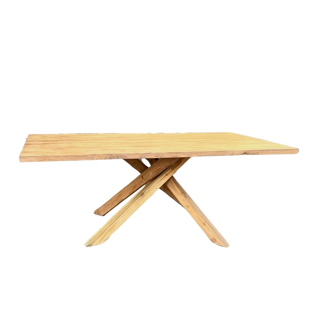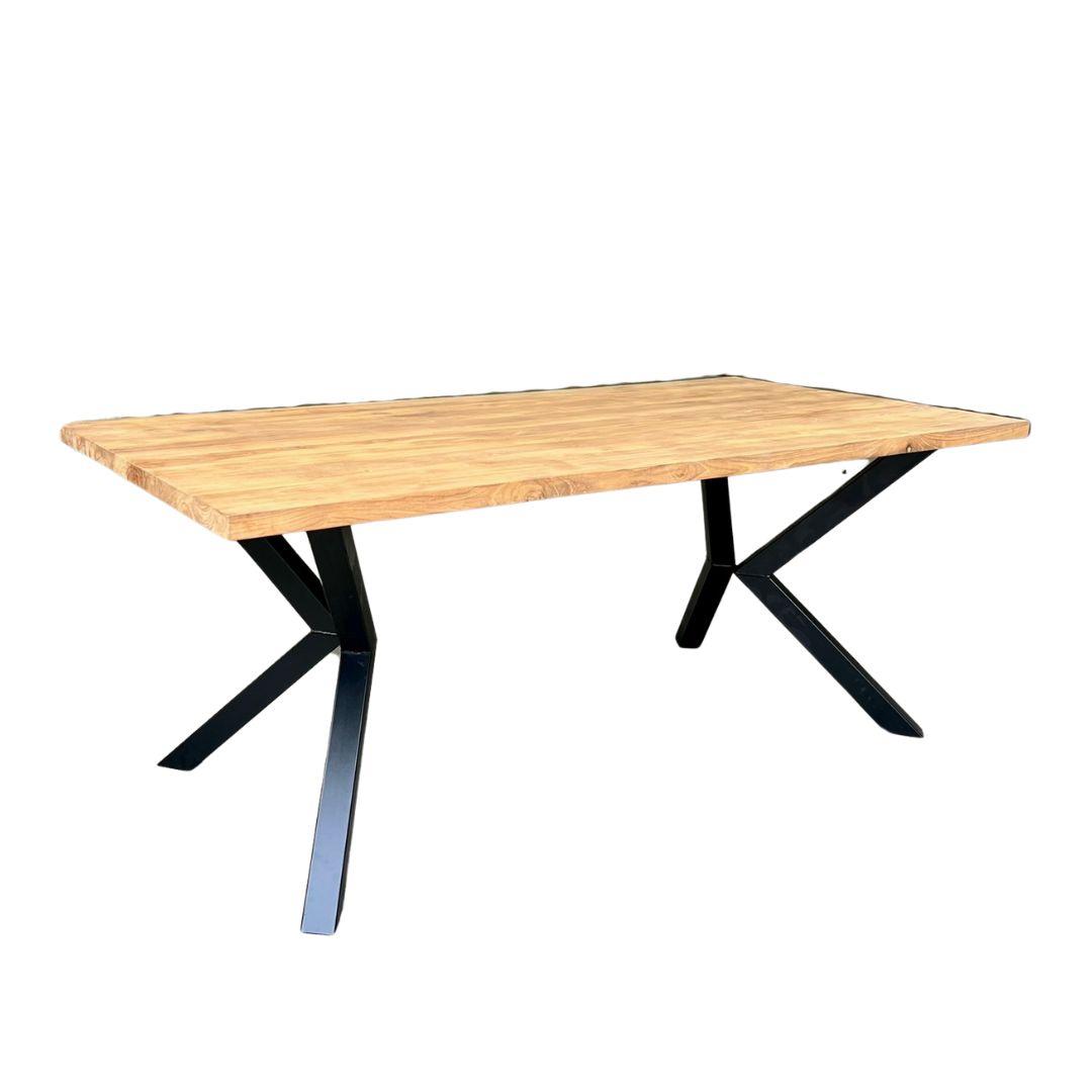 Ontdek ons 4 cm dikke rechthoekige tafelblad van gerecycled teakhout. Kies zelf een poot en creëer een unieke tafel die perfect past in jouw interieur!