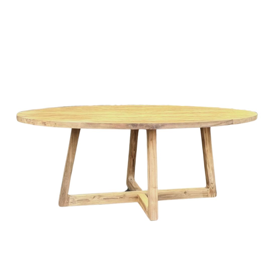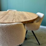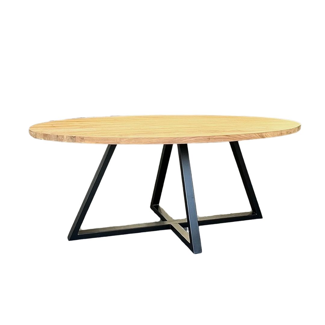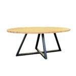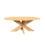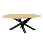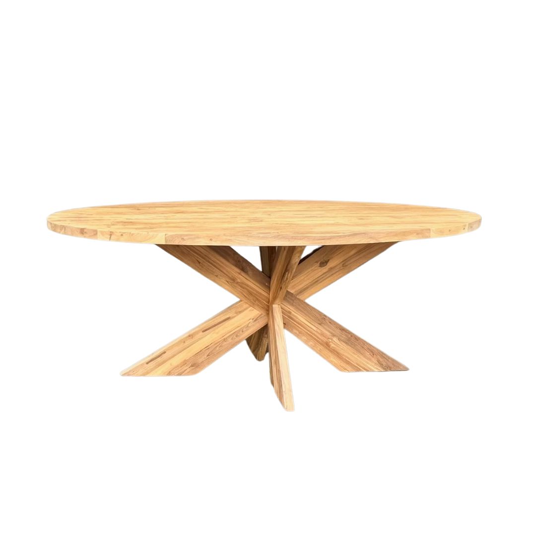 Ontdek ons 4 cm dikke ovale geborstelde blad van gerecycled teakhout. Kies zelf een poot en creëer een unieke tafel die perfect past in jouw interieur!