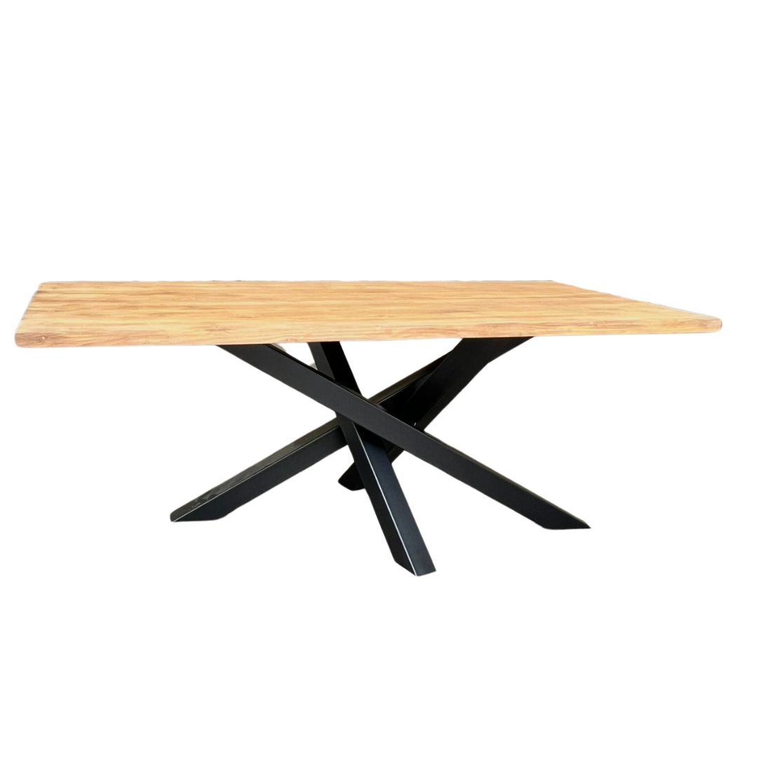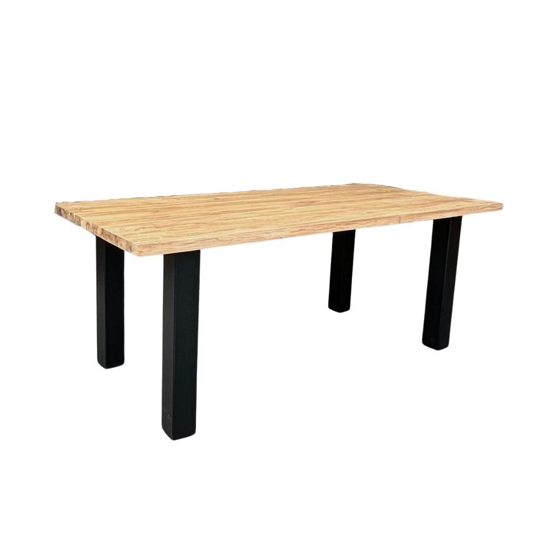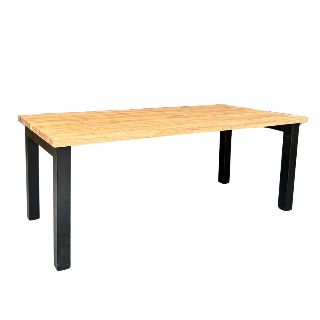 De tafel is gemaakt van de beste kwaliteit gerecycled teakhout met een fsc keurmerk. Het tafelblad heeft een geborsteld blad wat de tafel een robuuste maar natuurlijke uitstraling geeft. De rand van het blad is recht.
