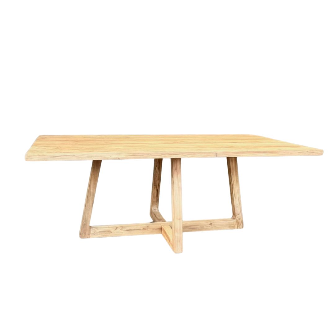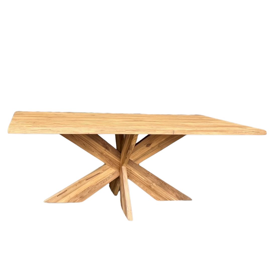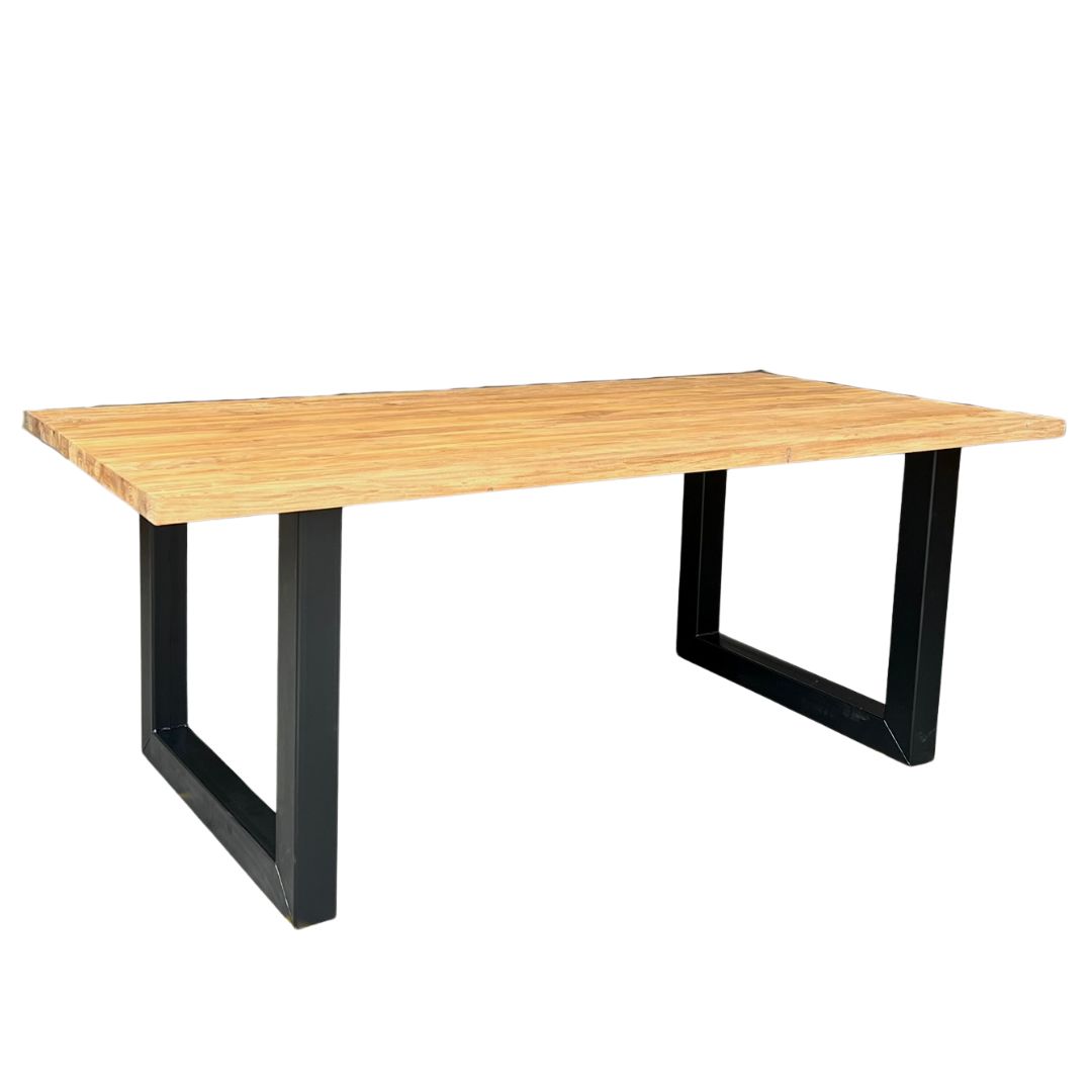 Ontdek ons 4 cm dikke rechthoekige geborstelde tafelblad van gerecycled teakhout. Kies zelf een poot en creëer een unieke tafel die perfect past in jouw interieur!