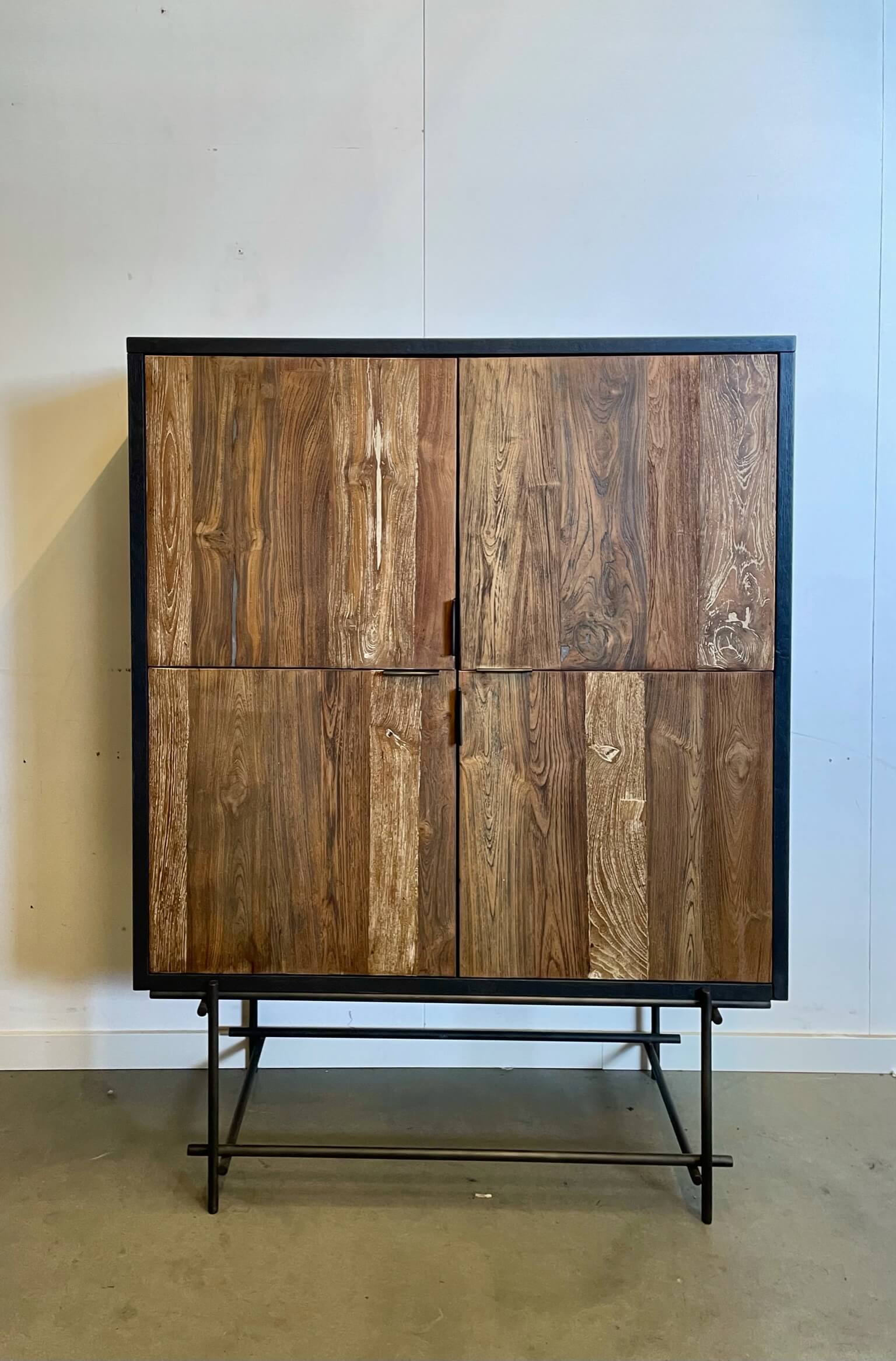 Teak kast met een frame van stalen buizen. Door het strakke design geeft het uw huis een moderne uitstraling.