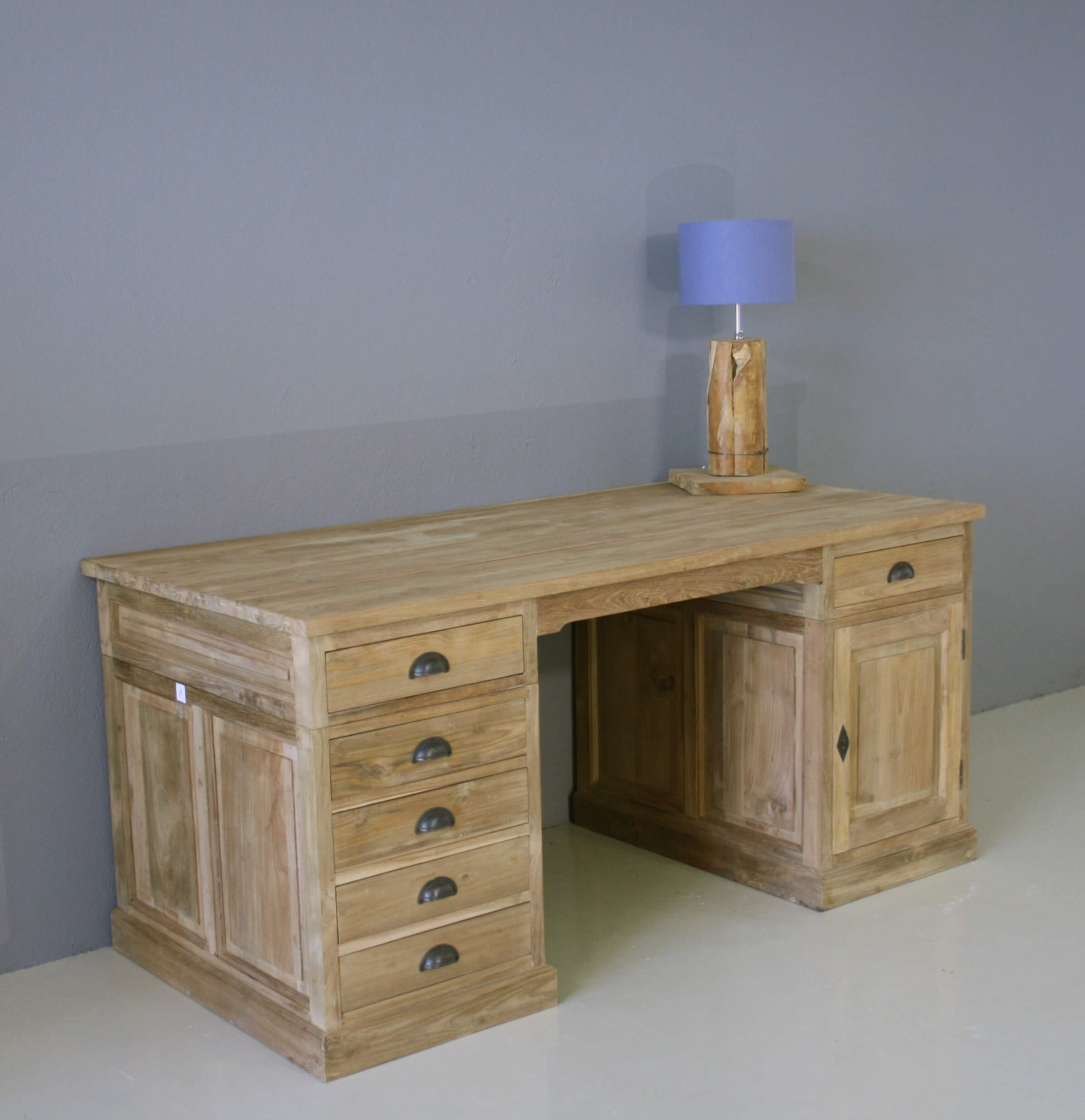 Aan een mooi bureau werk je veel fijner. Aan één kant laden, aan de andere kant een lade met deurtje. Het bovenblad kan los van de kastjes links en rechts.