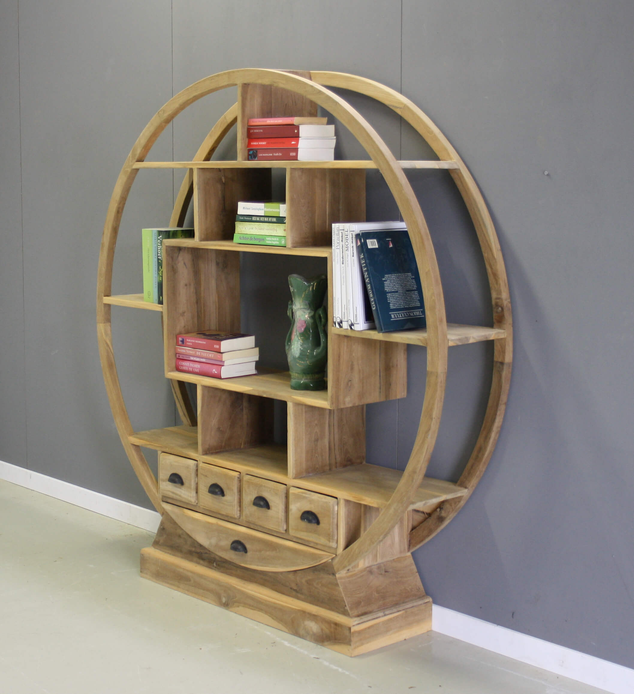 Ronde teakhouten roomdivider.