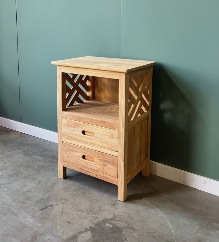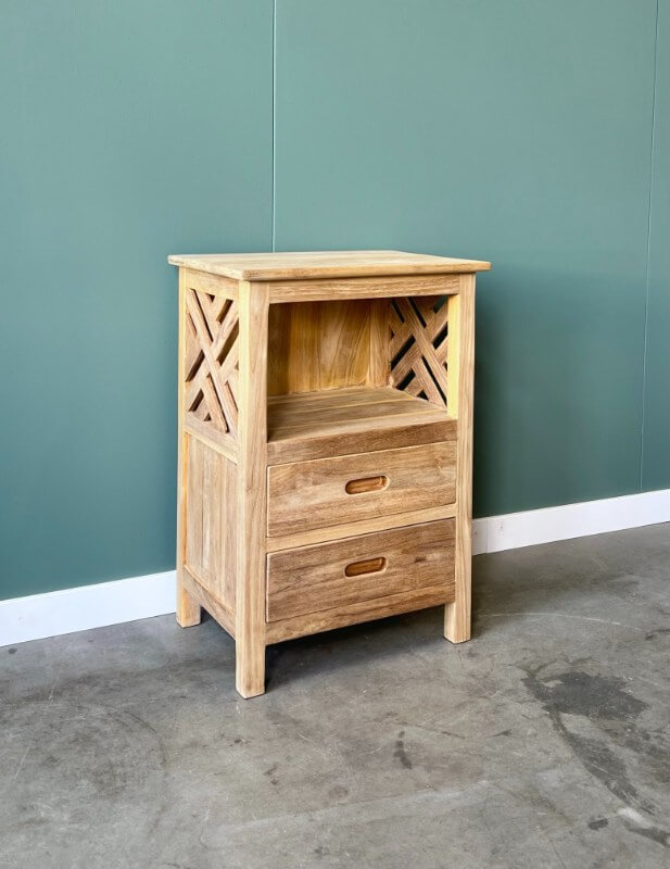 Ontdek het Crosswood Nachtkastje: een uniek en stijlvol meubelstuk voor je slaapkamer. Met zijn opvallende kruisontwerp aan de zijkanten en twee praktische laden biedt het meubel zowel charme als functionaliteit. Upgrade je slaapkamer vandaag nog!