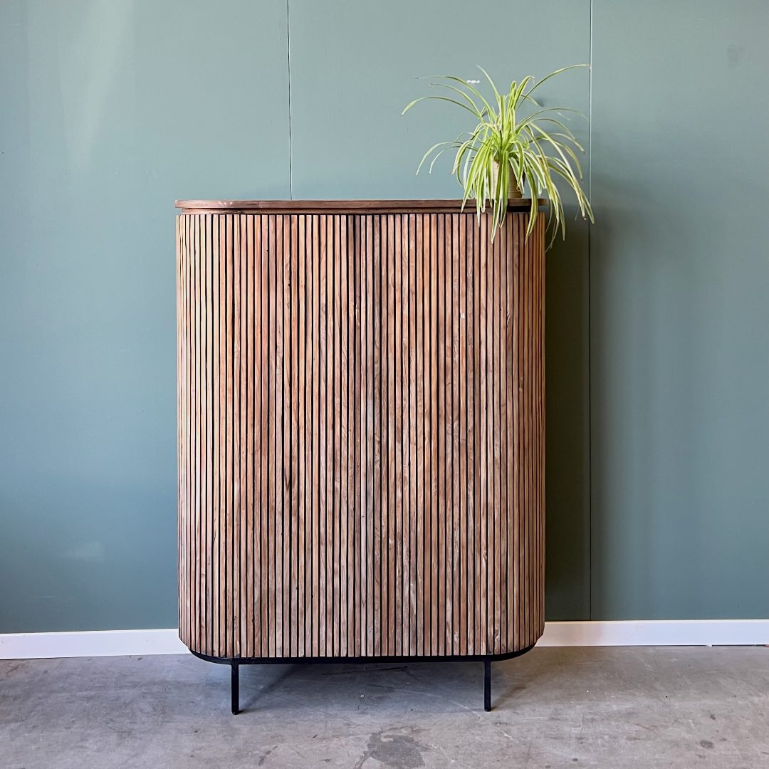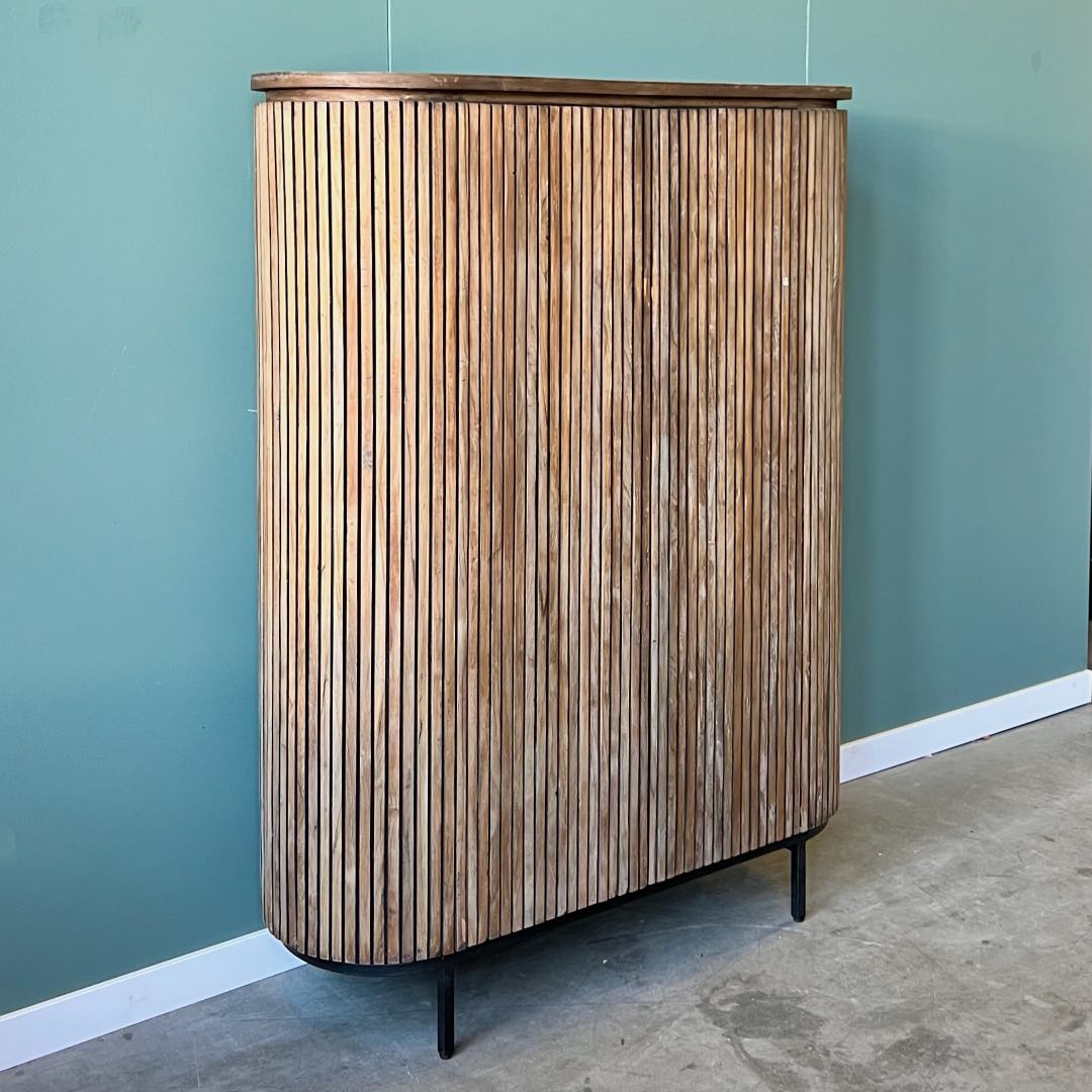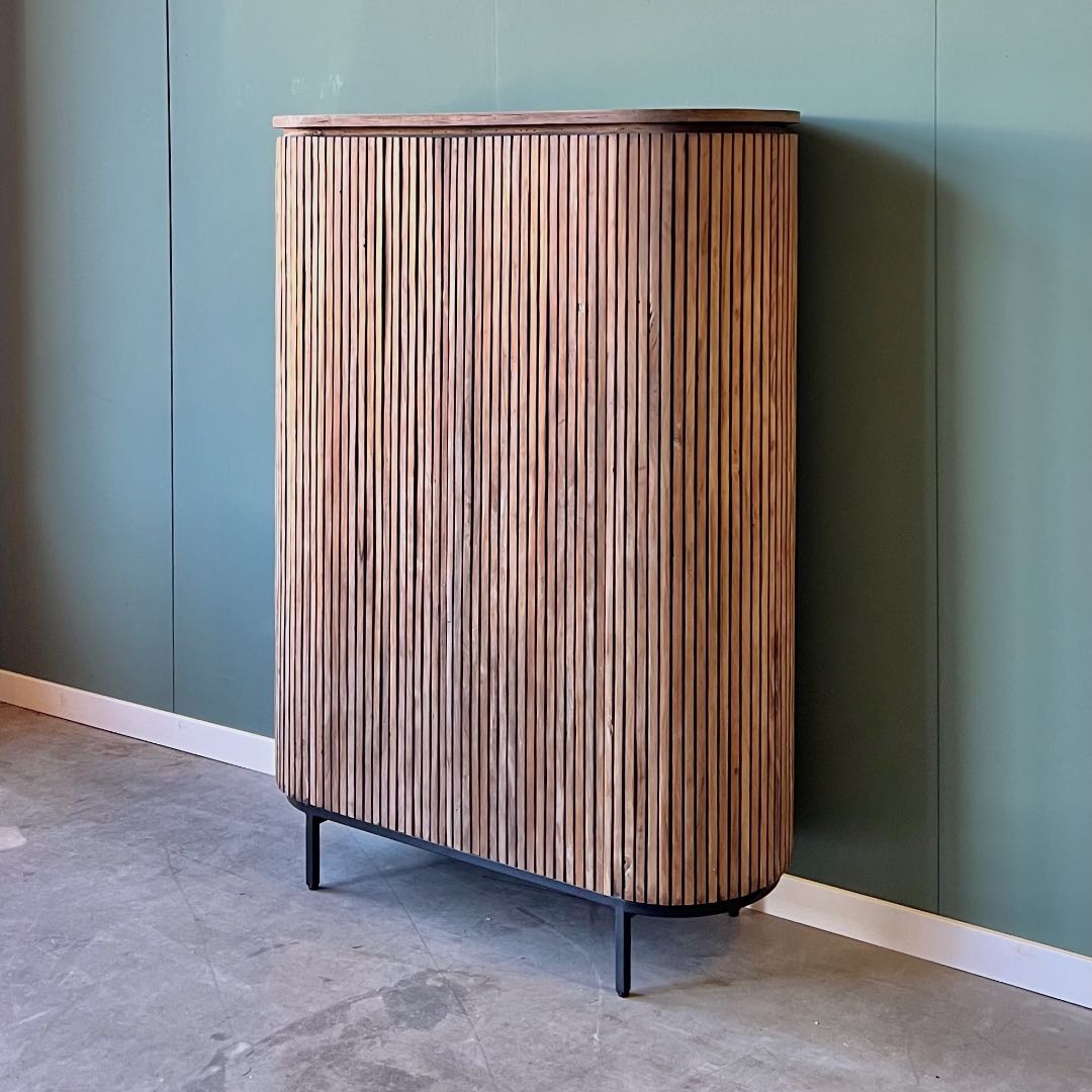 De Curve kast combineert zachte rondingen met een strak lattenpatroon voor een stijlvol en eigentijds design. Gemaakt van hoogwaardig gerecycled teakhout straalt dit meubel warmte, karakter en vakmanschap uit. De afgeronde hoeken zorgen voor een verfijnde, organische look die perfect past in een modern, natuurlijk interieur.