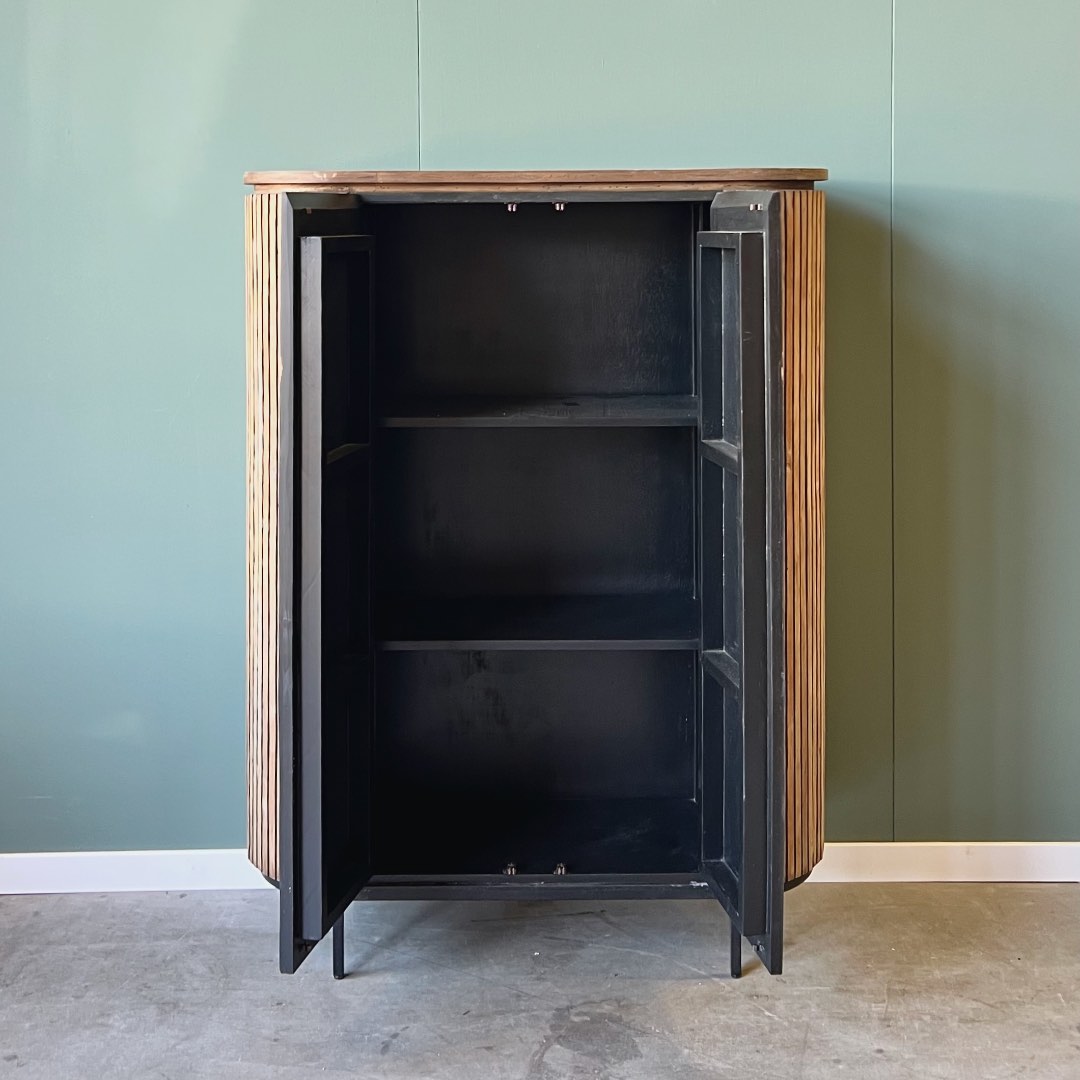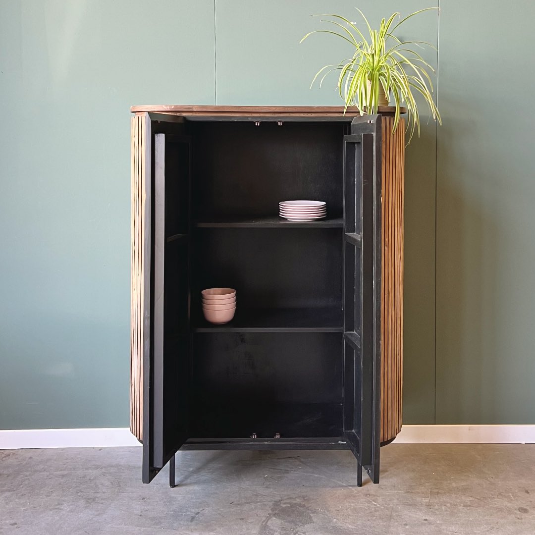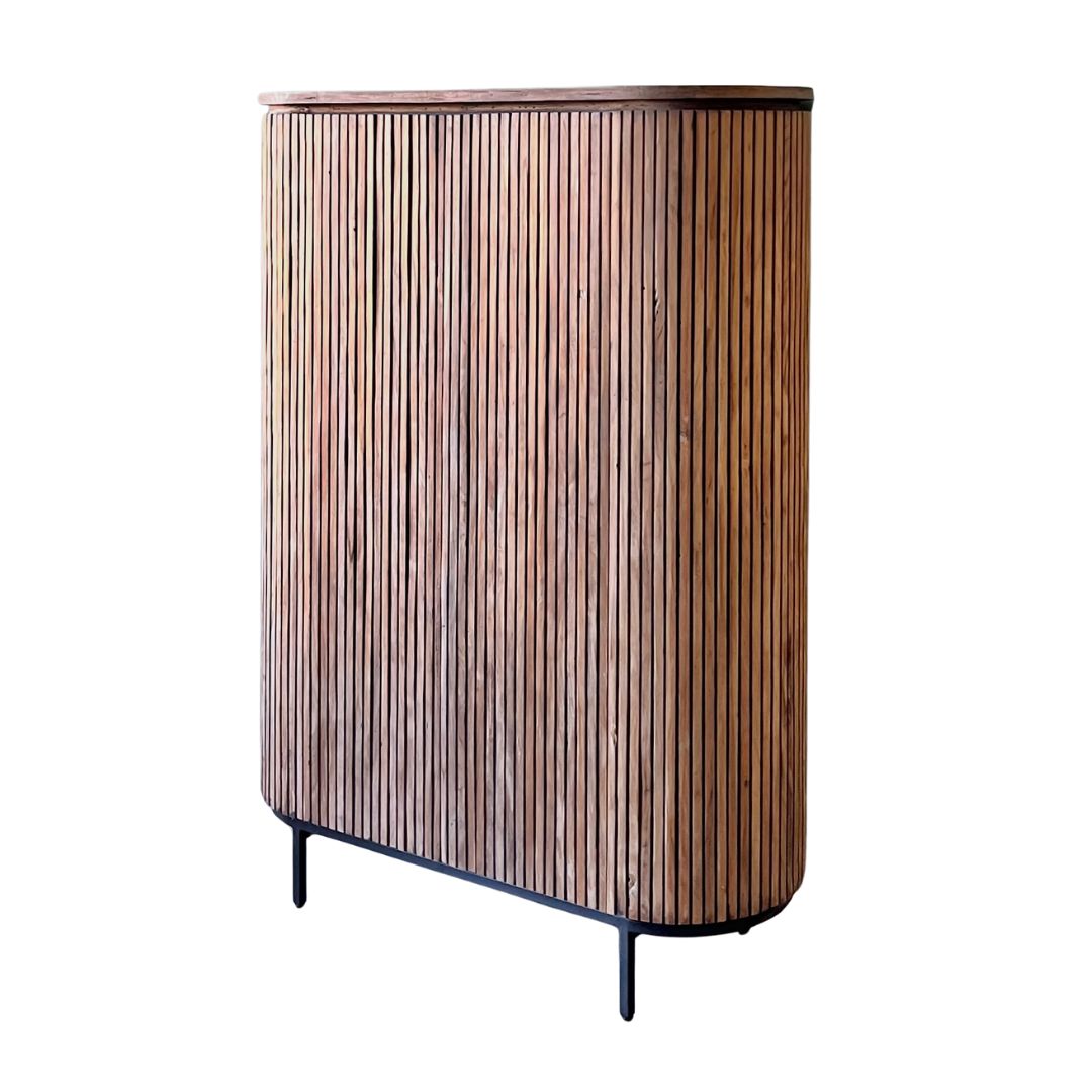 De Curve kast combineert zachte rondingen met een strak lattenpatroon voor een stijlvol en eigentijds design. Gemaakt van hoogwaardig gerecycled teakhout straalt dit meubel warmte, karakter en vakmanschap uit. De afgeronde hoeken zorgen voor een verfijnde, organische look die perfect past in een modern, natuurlijk interieur.