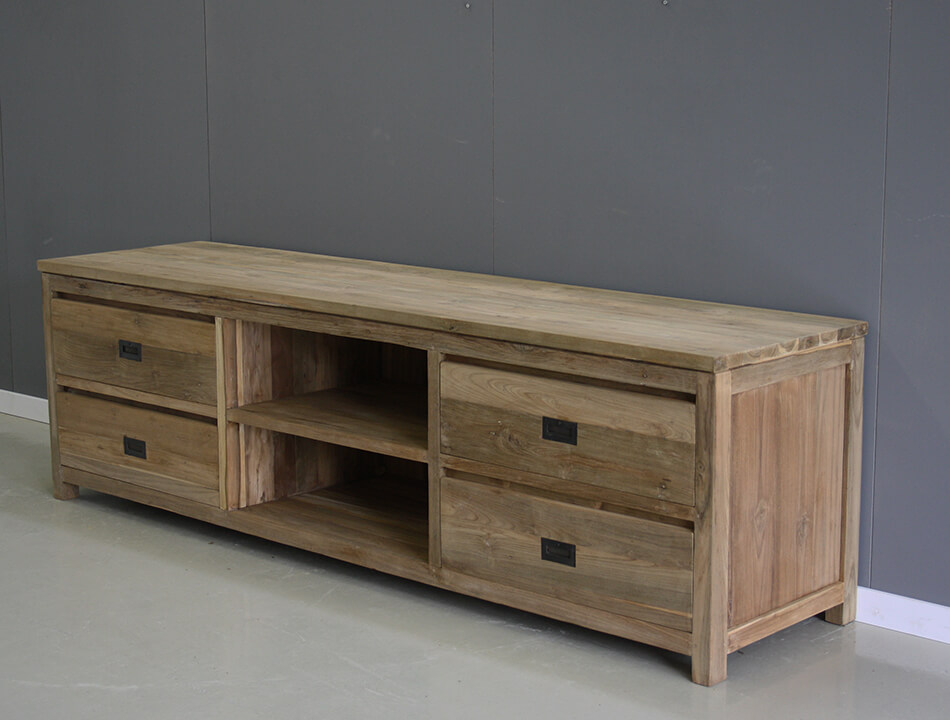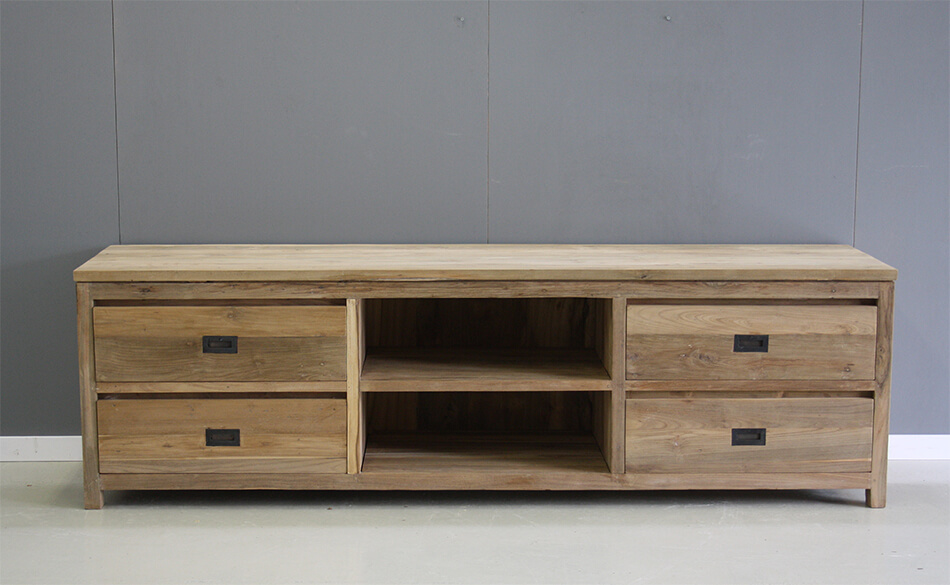 TV meubel Ter Aar van 200cm breed. Twee ruime open vakken en vier ruime laden.