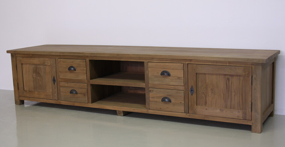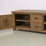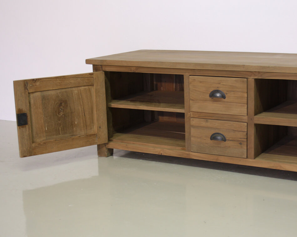 TV meubel Joop. Meubel met twee deuren, vier laden en twee open vakken.