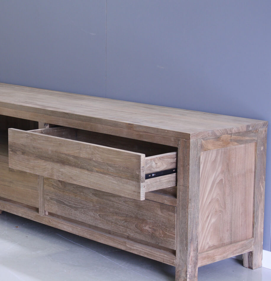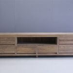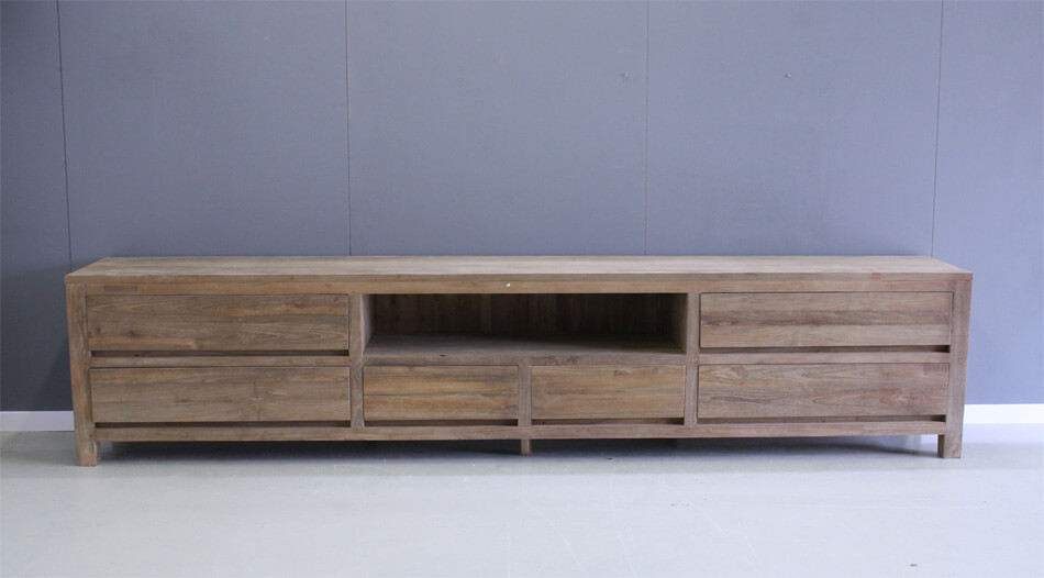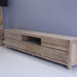 TV meubel Zoetermeer van 280cm breed met 6 laden. Op de laden zitten geen handgreepjes waardoor het meubel een strakke uitstraling krijgt.