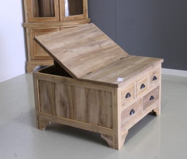 Teakhout is bijzonder materiaal. Een teak salontafel is gemaakt van gerecycled teakhout wat afkomstig is uit Indonesië. Het is zeer sterk materiaal, waardoor een salontafel teakhout lang meegaat. Bekijk het assortiment van unieke teakhouten salontafels hierboven.